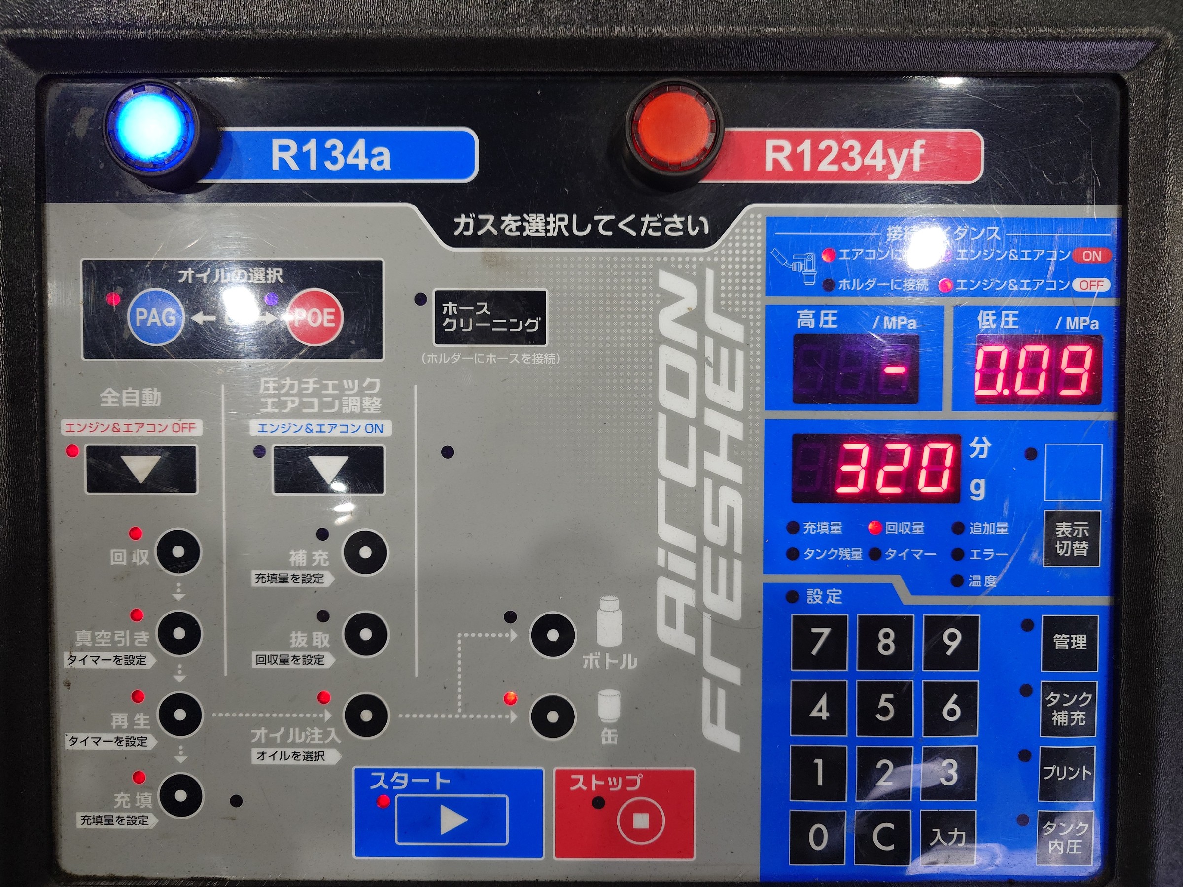 この機械は、ただエアコンガスを補充しているのではなく、