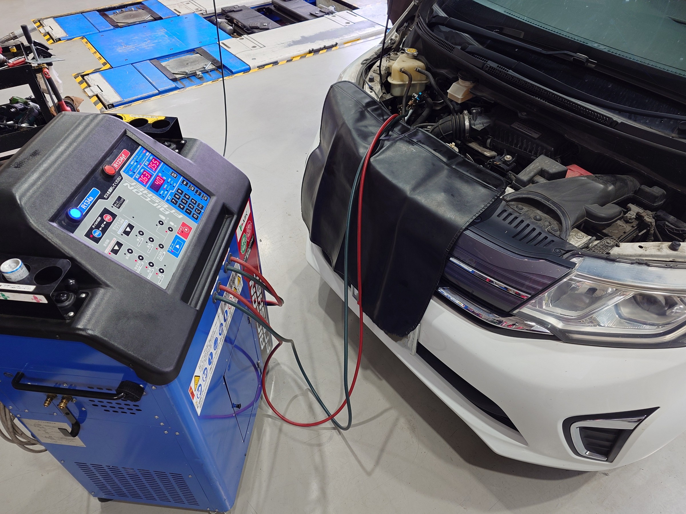 こちらのエアコンガスチェンジャーを操作して、クリーニングしていきます。