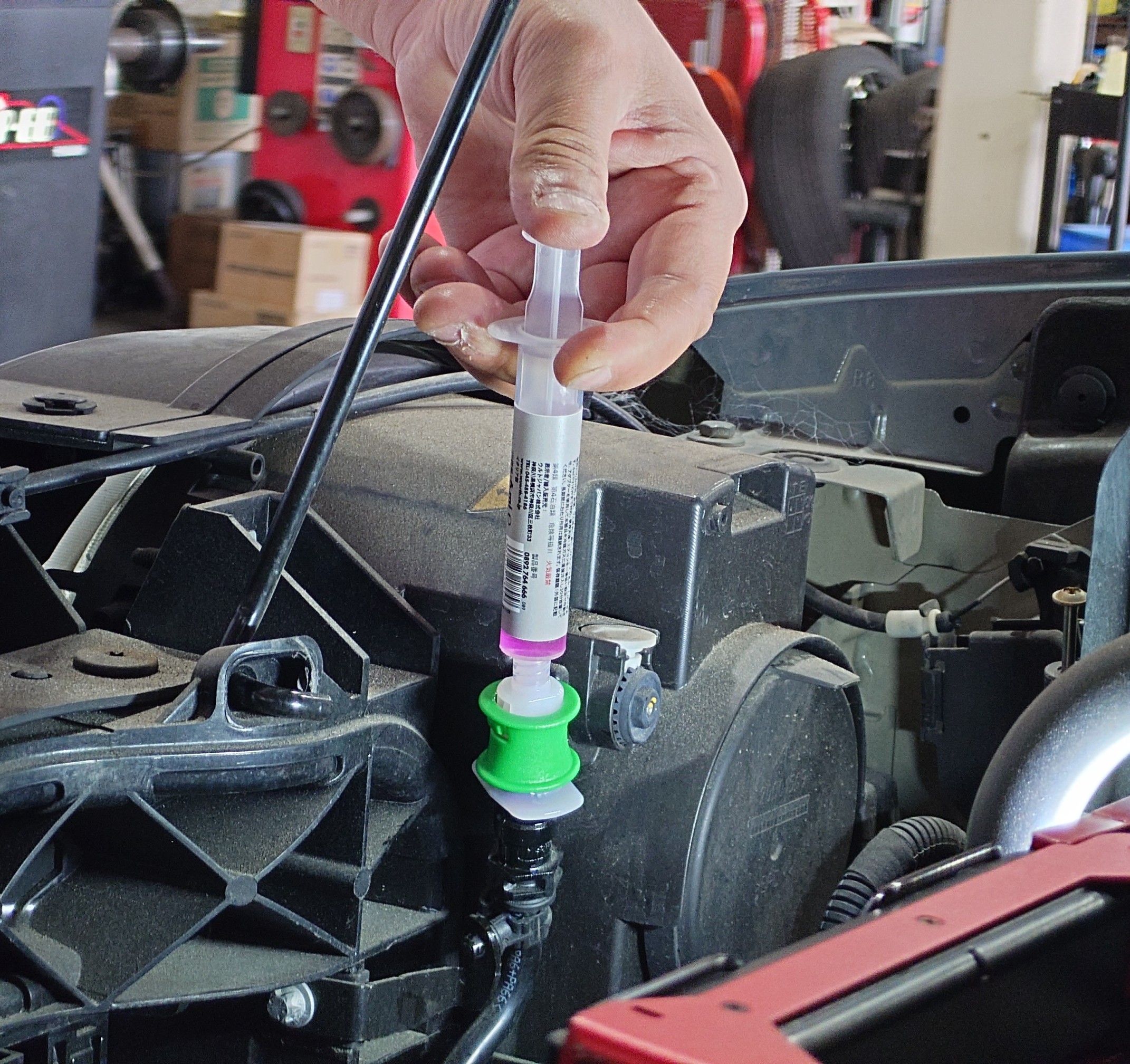 専用のアダプターを使って注入し、今後のガス漏れを防止します!!