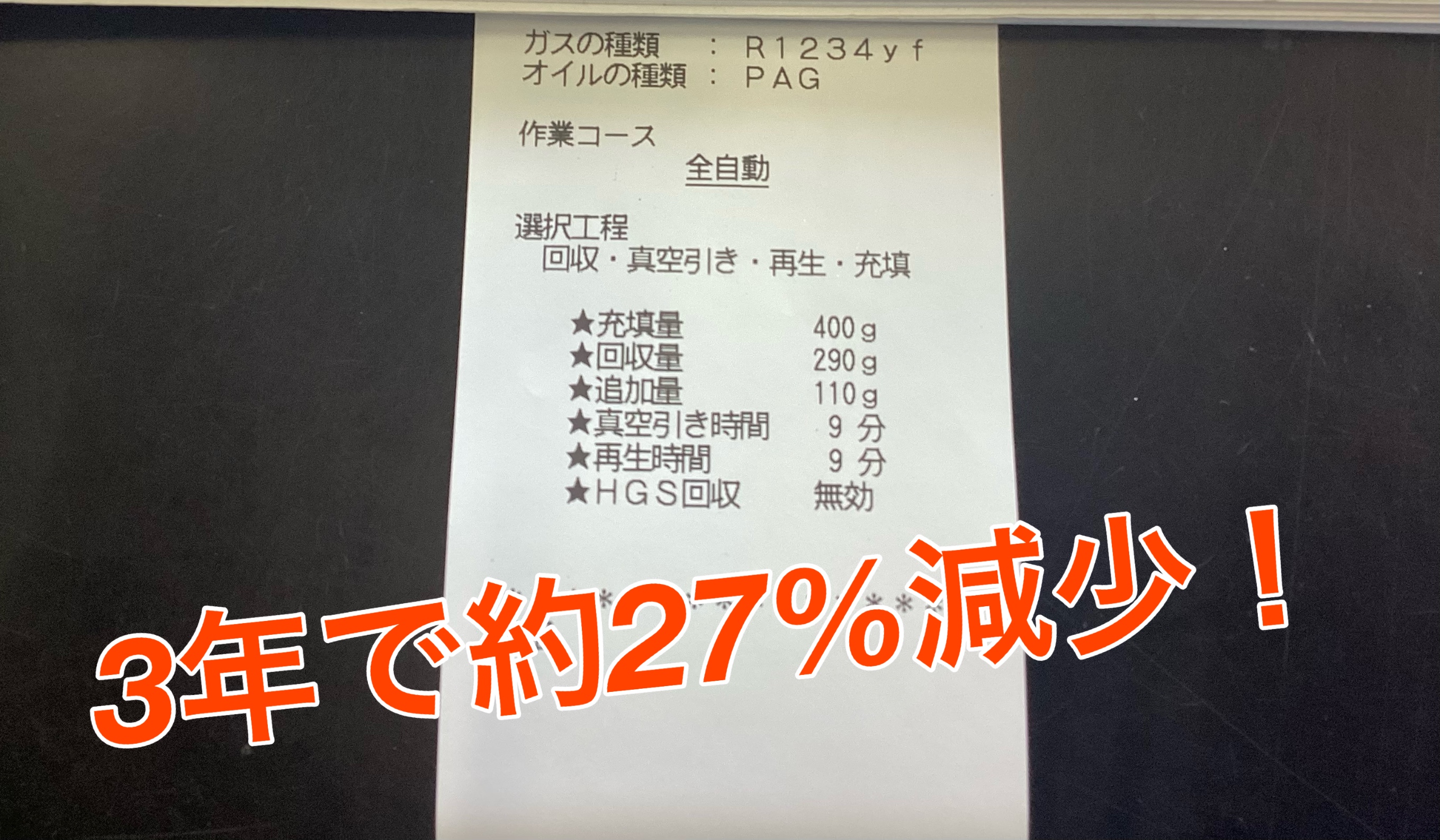 エアコンガスは約27パーセント減少していました!
