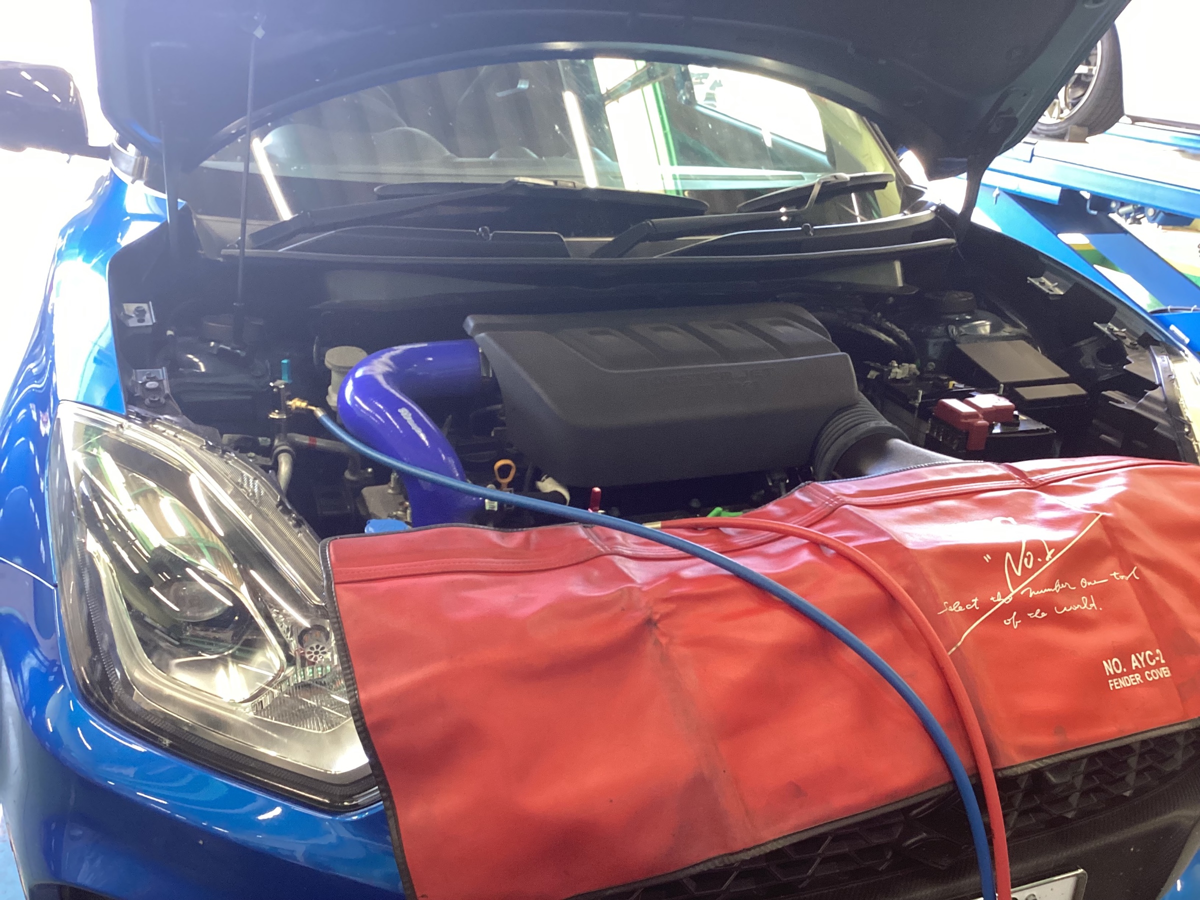 最新エアコンガスR1234yfのお車も要注意!スイフトスポーツにエアコンガスクリーニングを実施しました!