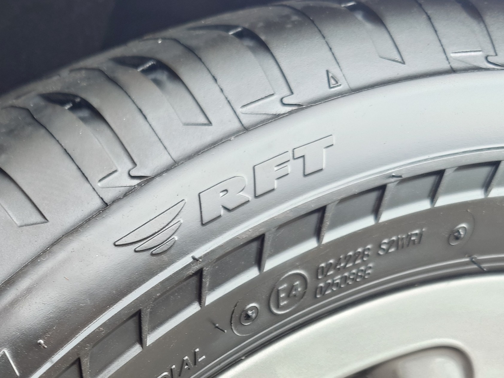 ちなみに、このタイヤにはこのようにランフラットであることを示すRFTマークがあります。