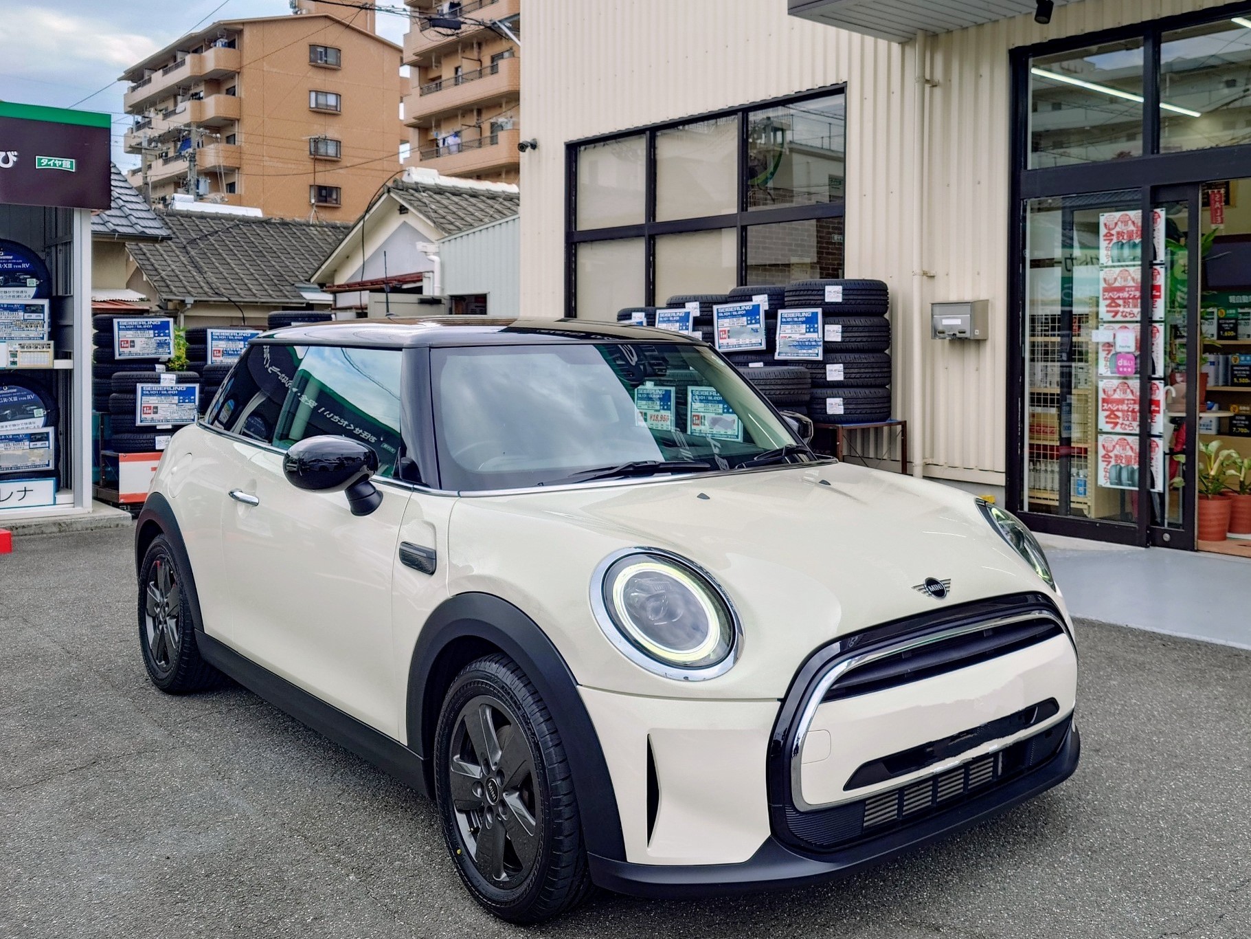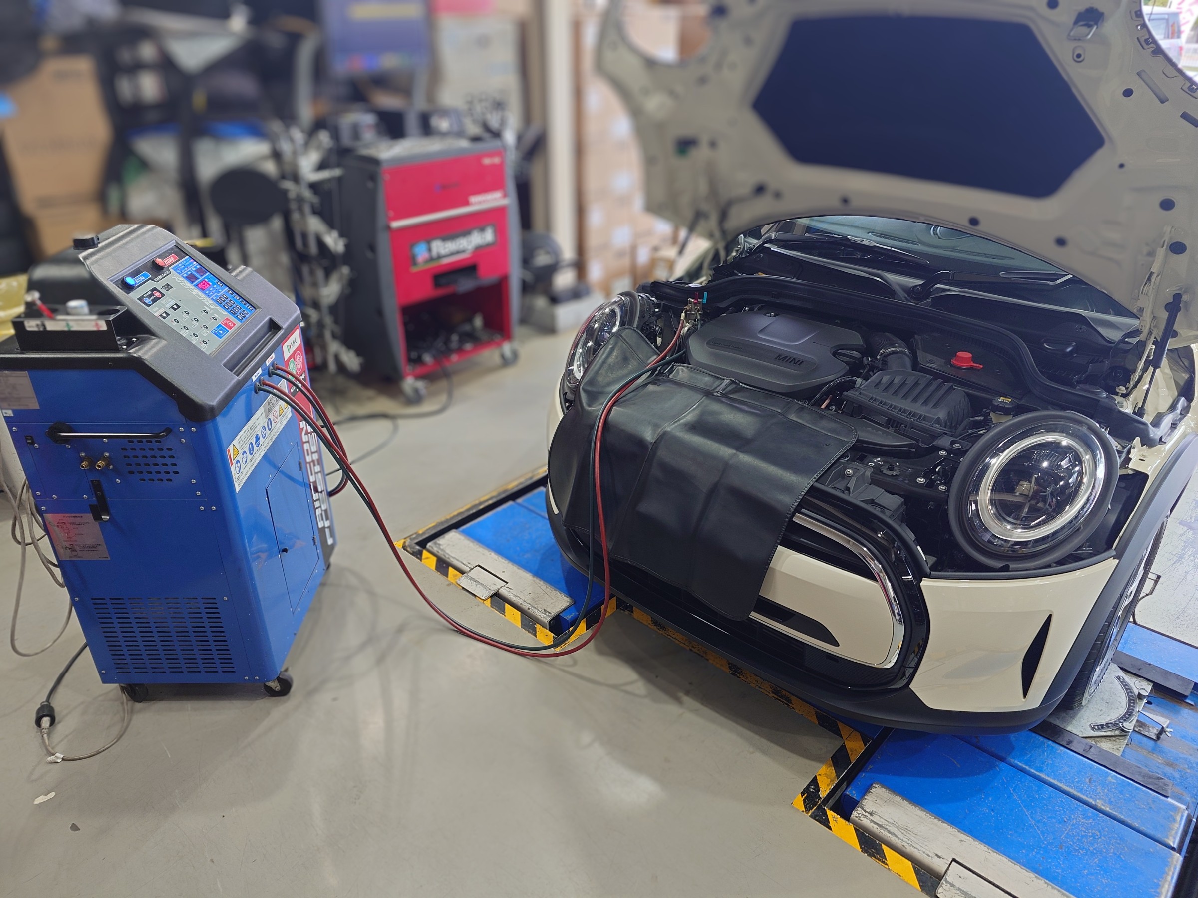 今回はコチラのミニ・クーパーのタイヤ交換、アライメント調整、エアコンガスクリーニング作業を
