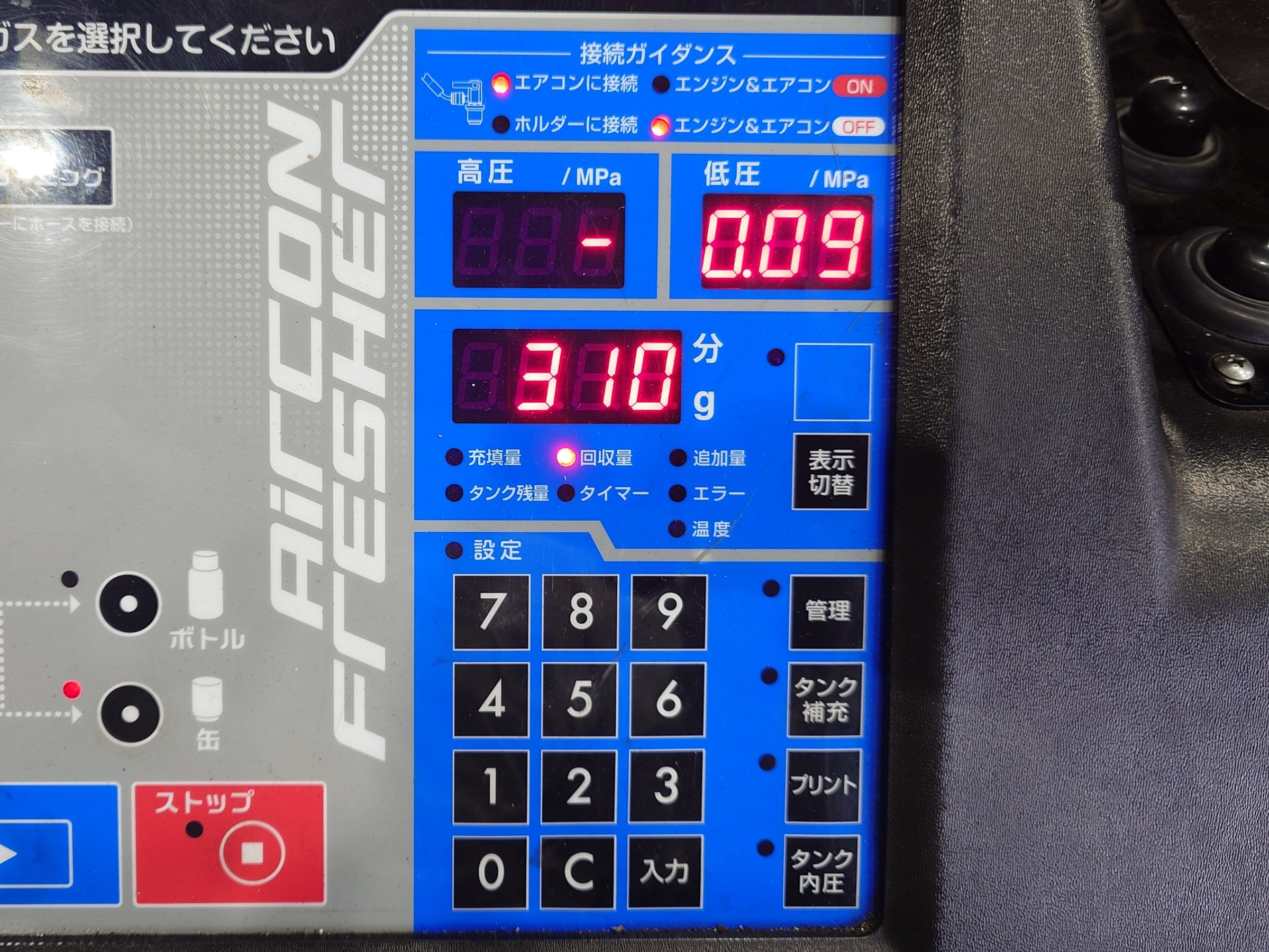 この機械は、ただエアコンガスを補充しているのではなく、