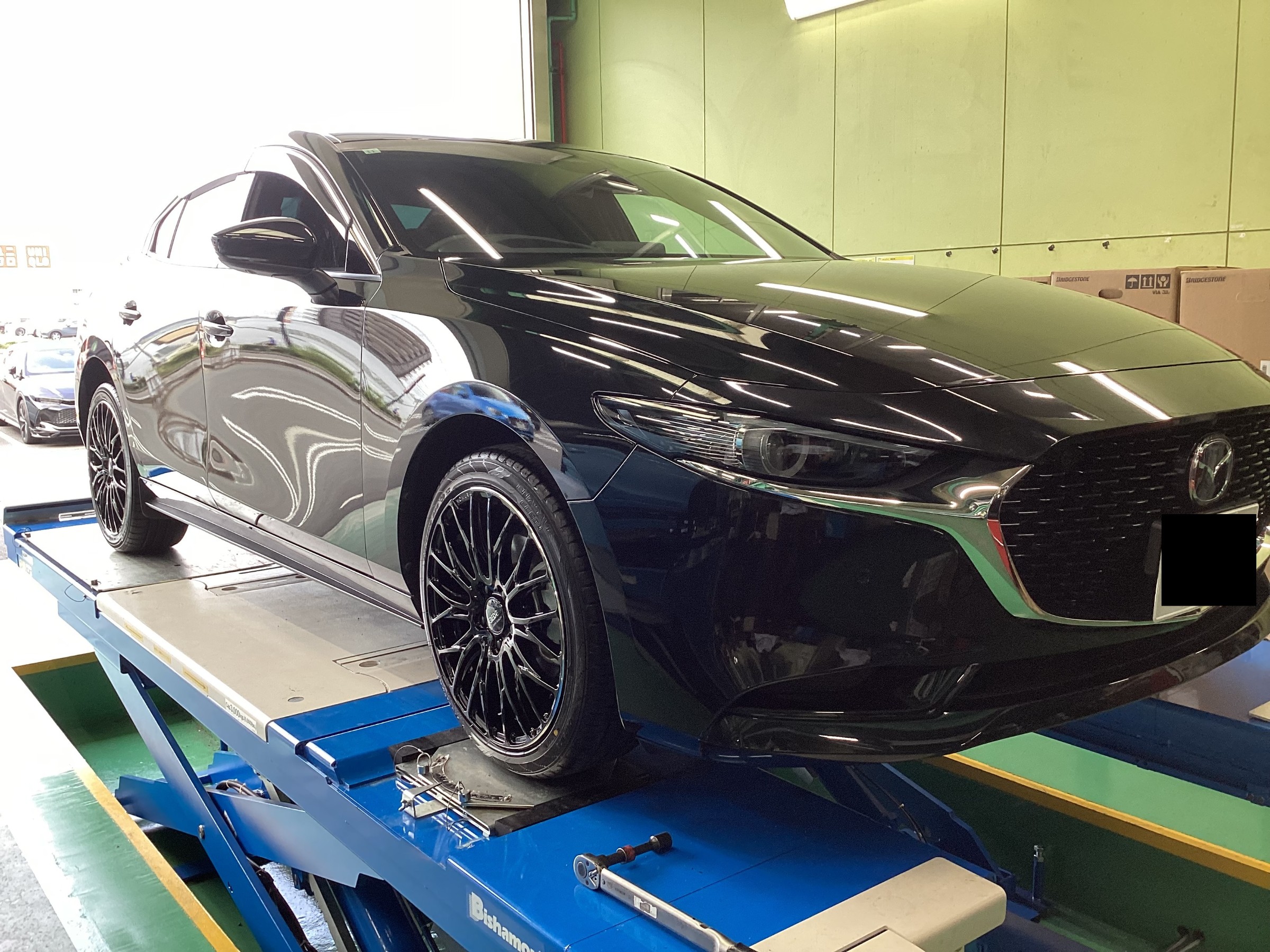 【HOMURA 2×10BD】黒×黒で魅せるMAZDA3!RAYSのホイールならNo.1ショップのタイヤ館倉敷大島店にお任せください!