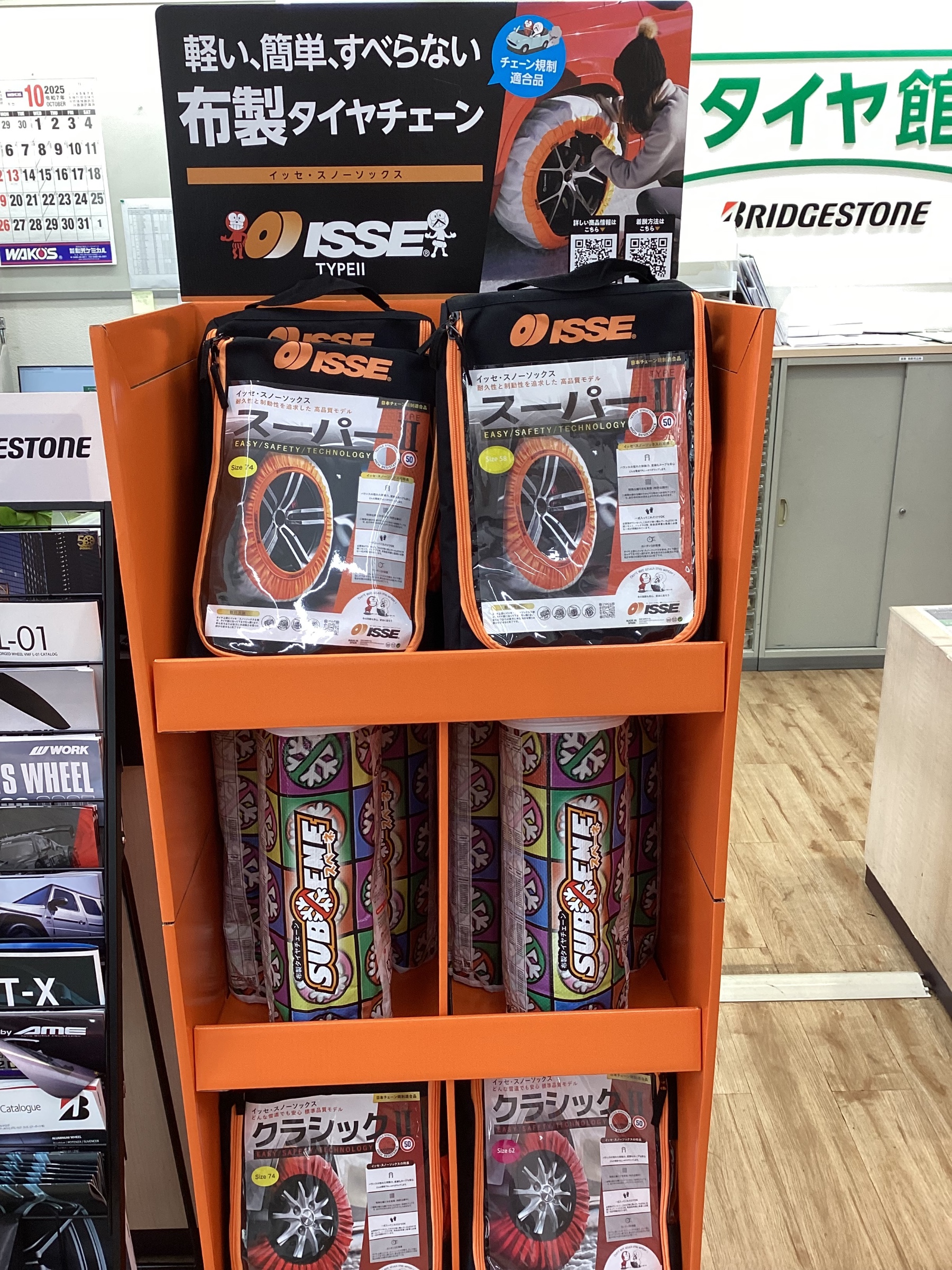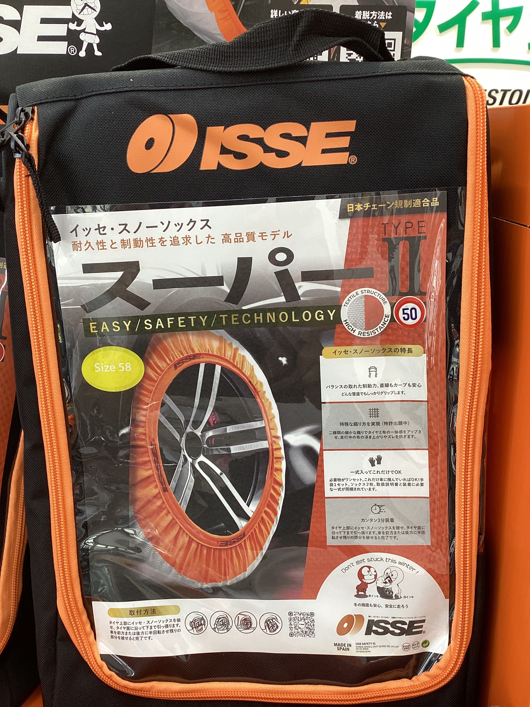 タイヤ館倉敷大島店ではISSE製のスノーソックスの中から3種類を在庫として販売しております。