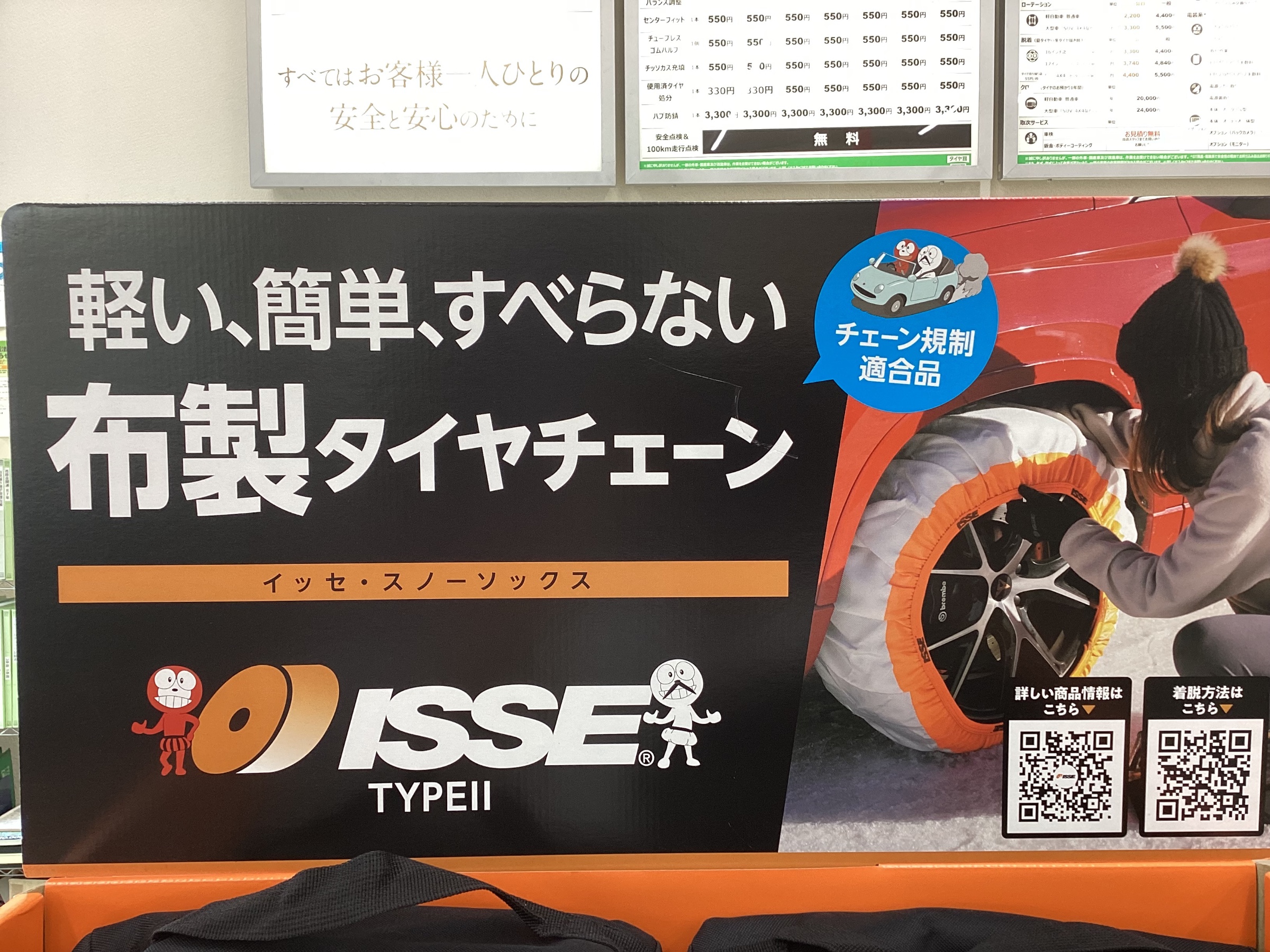 【布製チェーン】雪道を安心に、スタッドレスタイヤとご一緒にいかがですか?ISSEスノーソックスのご紹介★