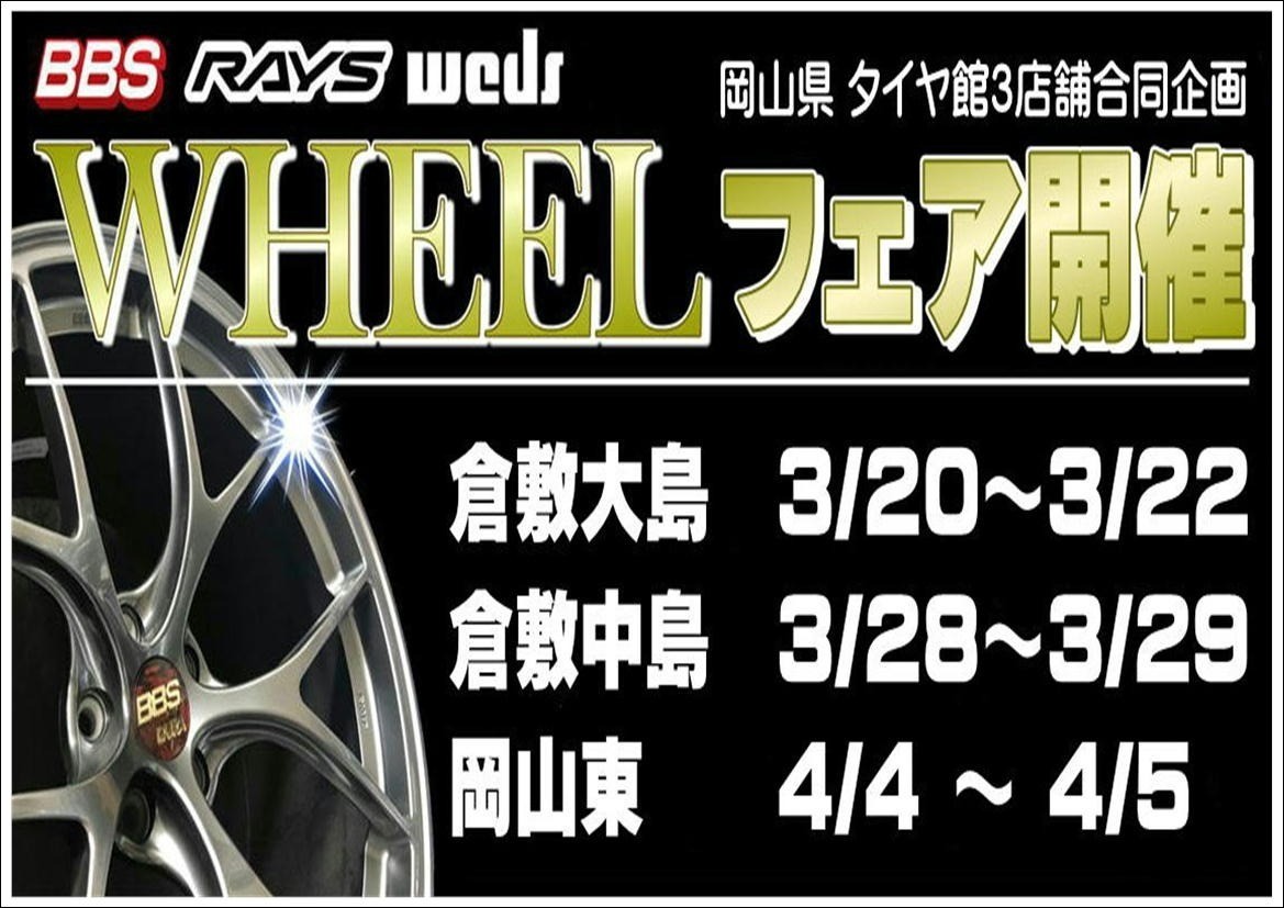 3月~4月ホイールフェアを開催いたします! ポスト 2026年3月3日 いつもタイヤ館倉敷大島店をご利用いただきありがとうございます! ♪今回はお得なイベントのご案内です♪ 3月から4月にかけて岡山県タイヤ館3店舗合同企画でホイールフェアを開催いたします!! 当店では3/20~3/22の3日間で特別展示を行いますので、ご興味のある方はぜひご来店ください! 見るだけ、聞くだけ、でも大歓迎です! 皆様のご来店をお待ちしております。 タイヤ館 倉敷大島 住所:710-0047岡山県倉敷市大島128-1 電話番号: 086-425-6411 相談予約 カテゴリ:ホイール関連 お知らせ 担当:加来