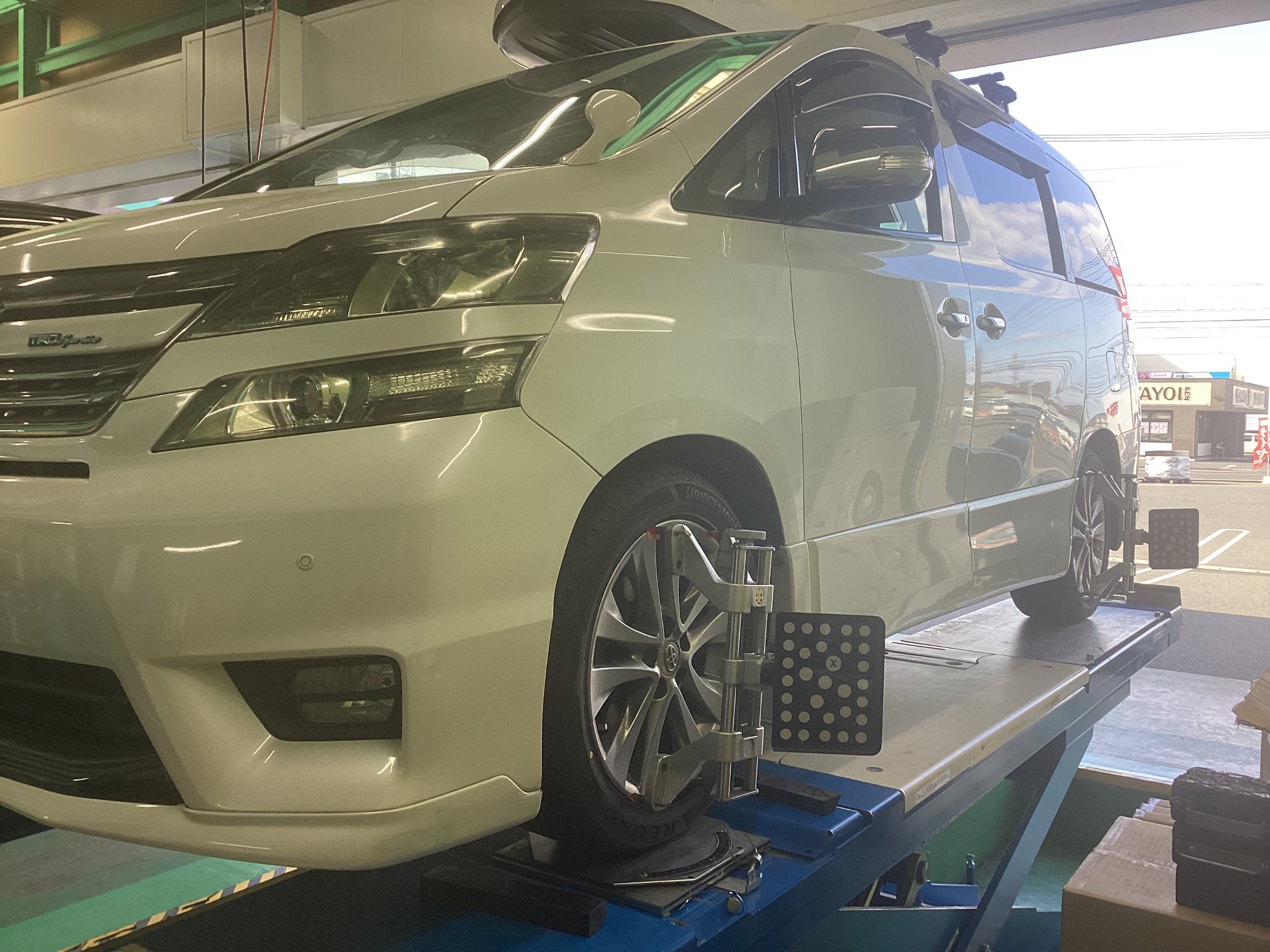 トヨタ ヴェルファイアにタイヤ交換・アライメント作業いたしました!