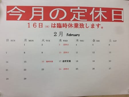 2/17(水)は通常営業しておりますのでお気を付け下さい!