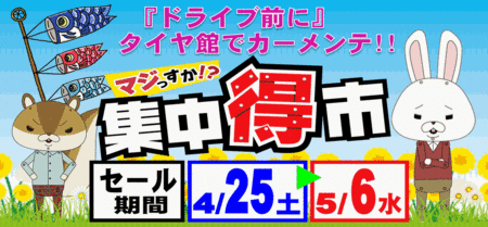 セール期間は4/25~5/6まで!ゴールデンウィーク前にぜひタイヤ館にご来店下さい!