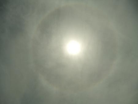 サイクリング中、ふと空を見上げると太陽に輪が!