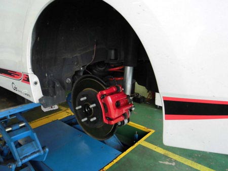 今回はキャリパーとキャリパーサポートを外した上で塗装しました。
