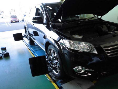 ヴァンガード アライメント実施!! ポスト 2014年9月13日 どうも下山です。本日はヴァンガードにアライメントを実施いたしました!リアタイヤに偏摩耗(内減り)が出ていたため、タイヤの2本交換もさせていただきました。実際にお客様に数値をみていただき、偏摩耗が起こっている原因をお伝えさせていただきました。また一週間ほど走行して、点検に来ていただきますのでその時にアライメント調整後の感想をお伺いしたいと思います!お電話でのアライメント等のご相談もお気軽にどうぞ! 担当:下山