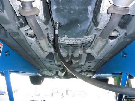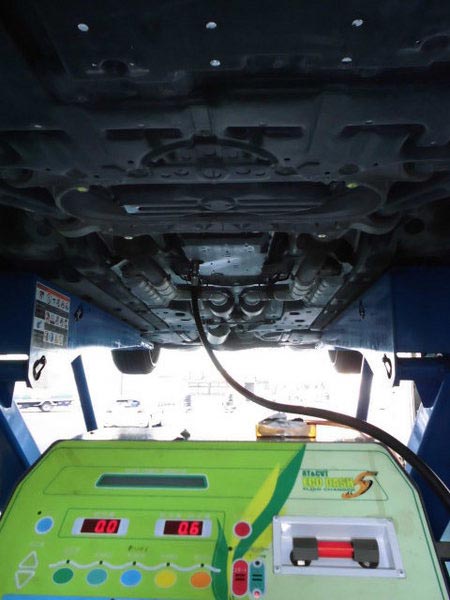 写真のようにOILパンから専用工具を使って迅速な作業を行っております。