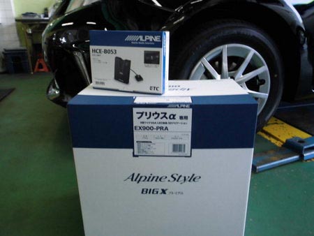 さて、本日はプリウスαにアルパイン9インチナビとバックカメラの取付けです。