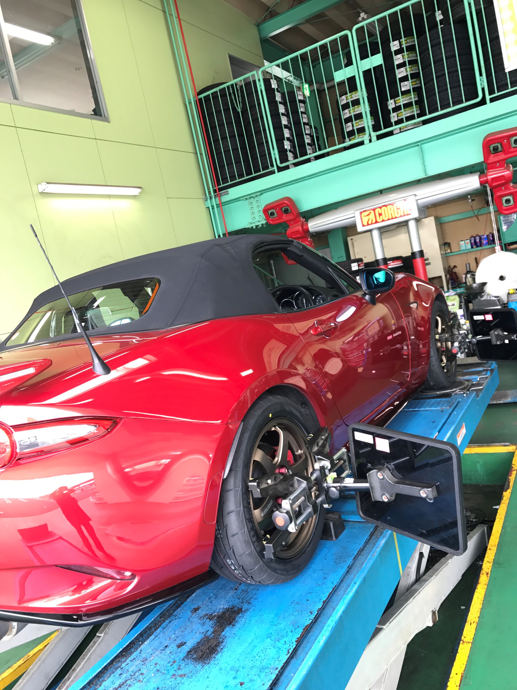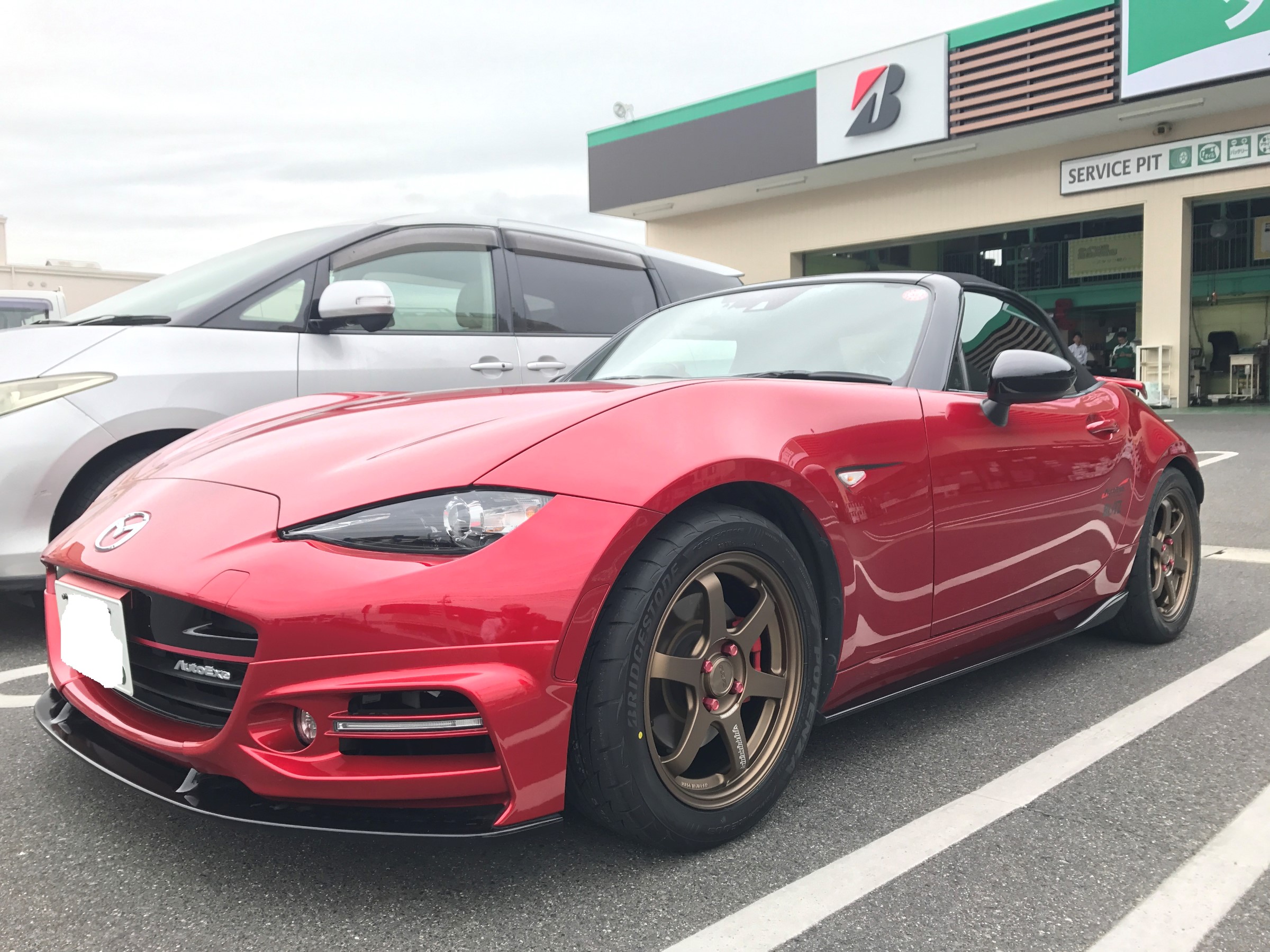 RAYS TE37ソニックの続き!! ポスト 2019年4月30日 RAYS TE37ソニックの続きになります。 今回は車両取り付けの紹介です。 こちらのロードスターに取り付けしました~ この状態から・・・・・・・・ こんな感じに!!! かっちょいい!!かなりイカシテマス!!!! タイヤもポテンザでかなりレーシー! そして、アライメントもカッチリとらせていただきました~ お車のホイール交換・カスタマイズはタイヤ館倉敷大島店まで!! 担当:田村