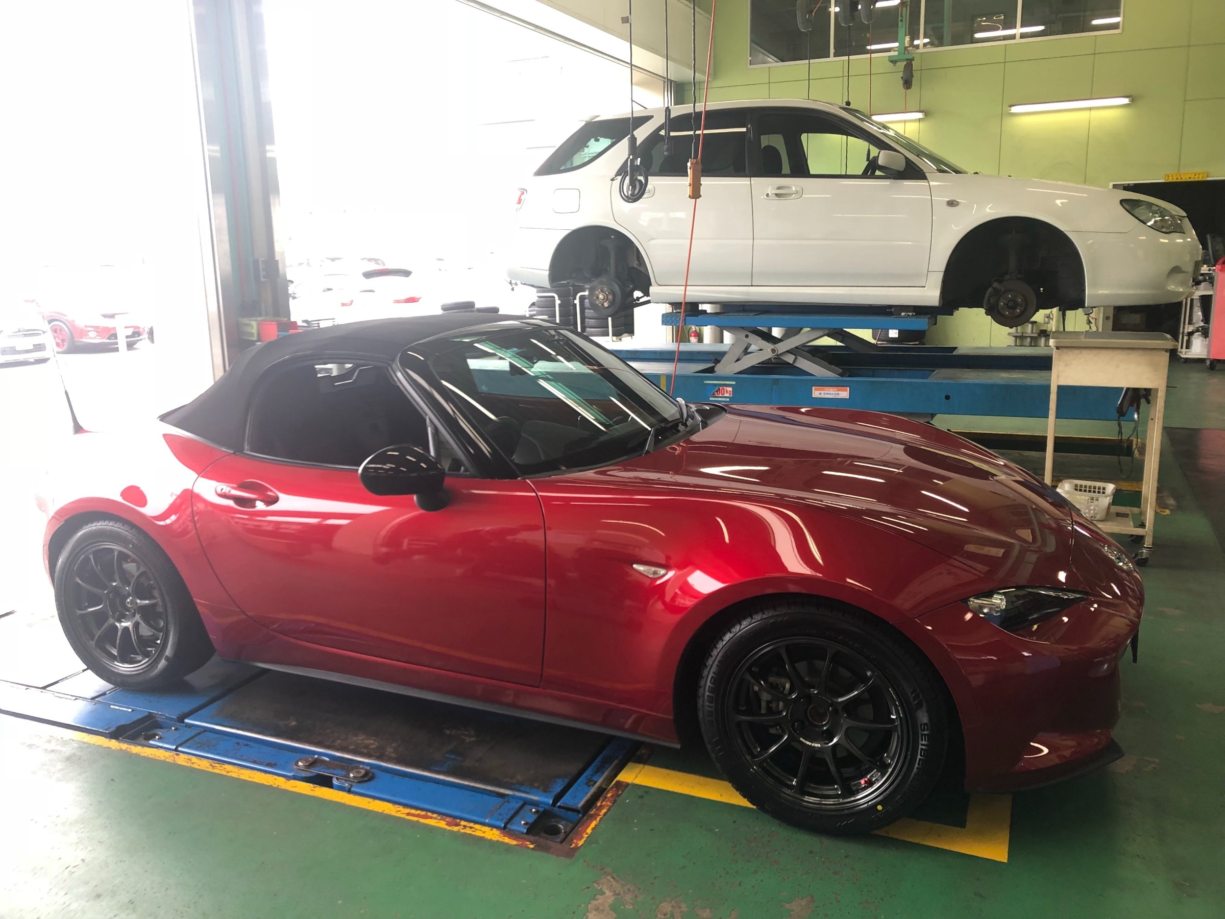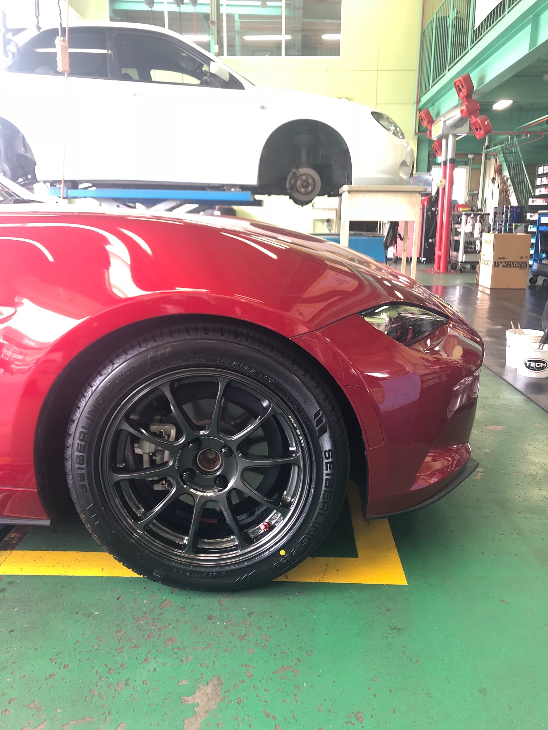 ロードスターのカスタム事例 ポスト 2019年5月24日 最近、ロードスターの作業はいろいろと紹介していますが・・・ 今回は、車高調とホイールを交換いたしました。 取り付け前の写真は撮り忘れましたが・・・ 足回りはTEINのフレックスZ・ホイールはRAYS ZE40でセットいたしました!! いい感じに決まってますね!! ロードスターのカスタムはタイヤ館倉敷大島店へお任せください!! 詳しくはスタッフまで~ 担当:田村