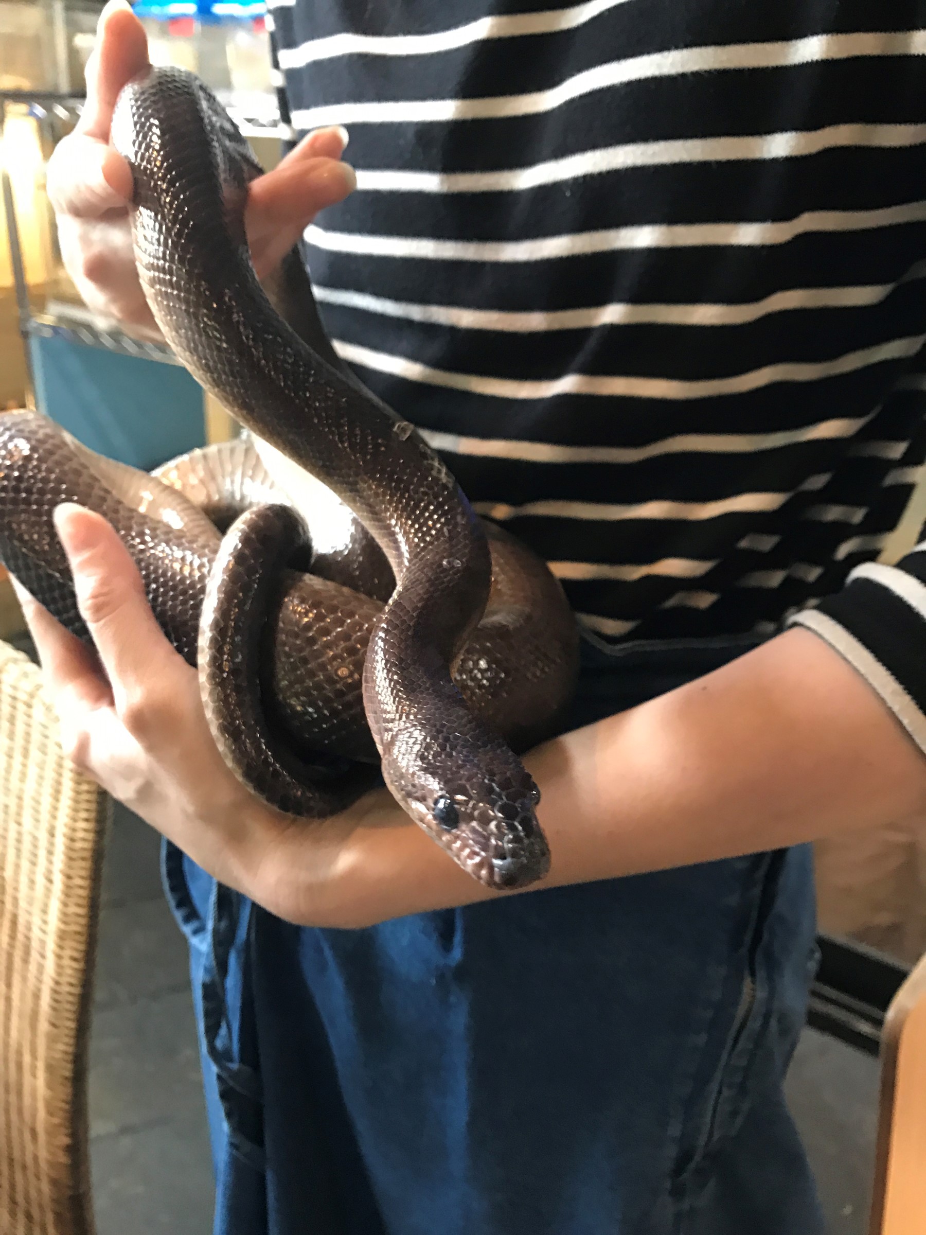 意外と僕の嫁さんが積極的で2メーター以上のヘビを首にかけたり腰に巻いてみたりしてました~