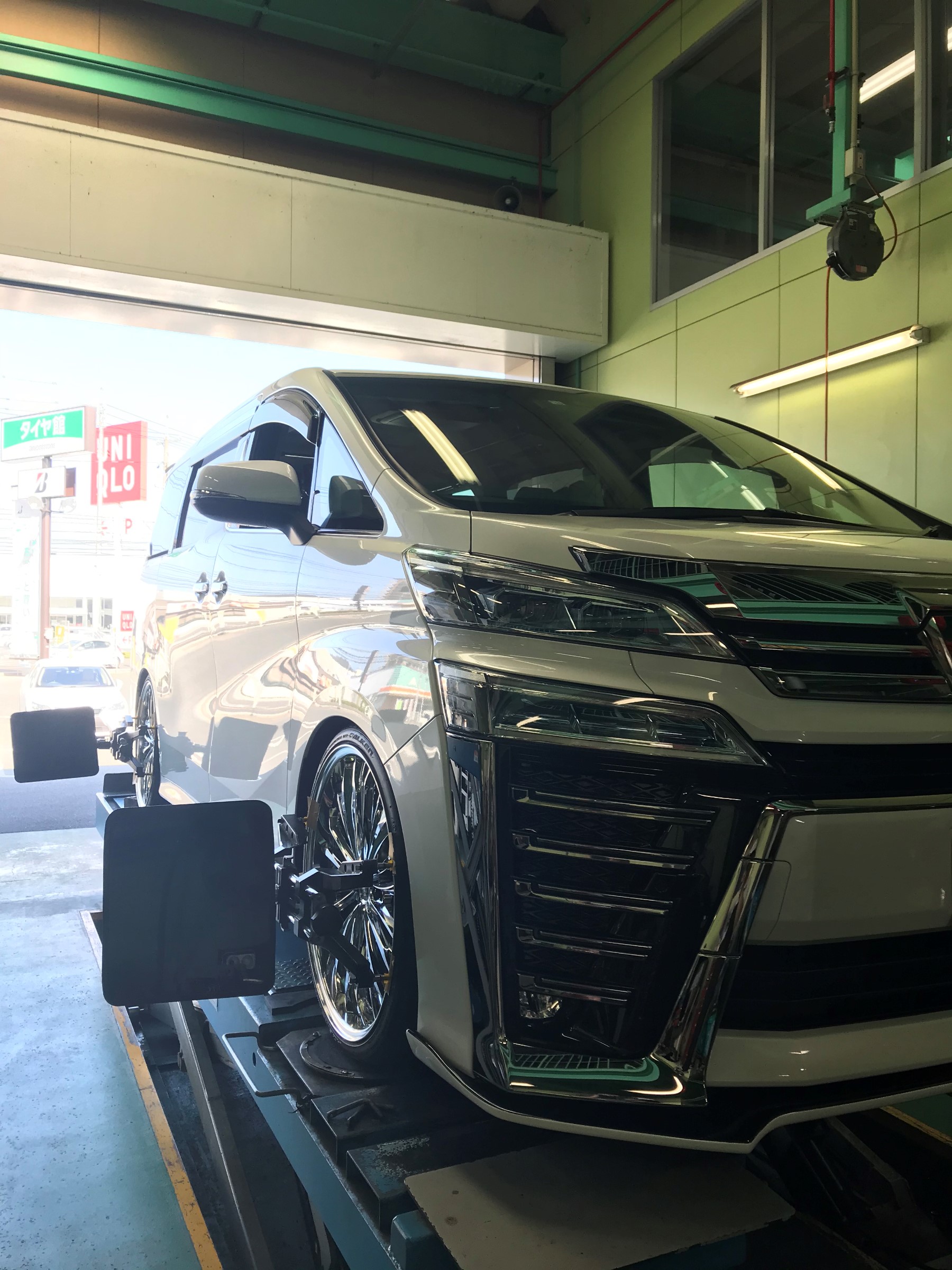 ヴェルファイアのアライメント! ポスト 2019年10月14日 今回はヴェルファイアのアライメントの紹介です! こちらのヴェルファイア ぴかぴかのホイールなので~ 慎重にセンサーを取り付けて 調整していきます! この型から調整ヶ所がフロントトゥの2ヶ所とリアトゥの2ヶ所で計4ヶ所の調整ができます! より精密な調整ができますので、現行のアルファード・ヴェルファイアのお乗りのお客様は是非タイヤ館倉敷大島店へアライメント調整をお任せください!! 担当:田村