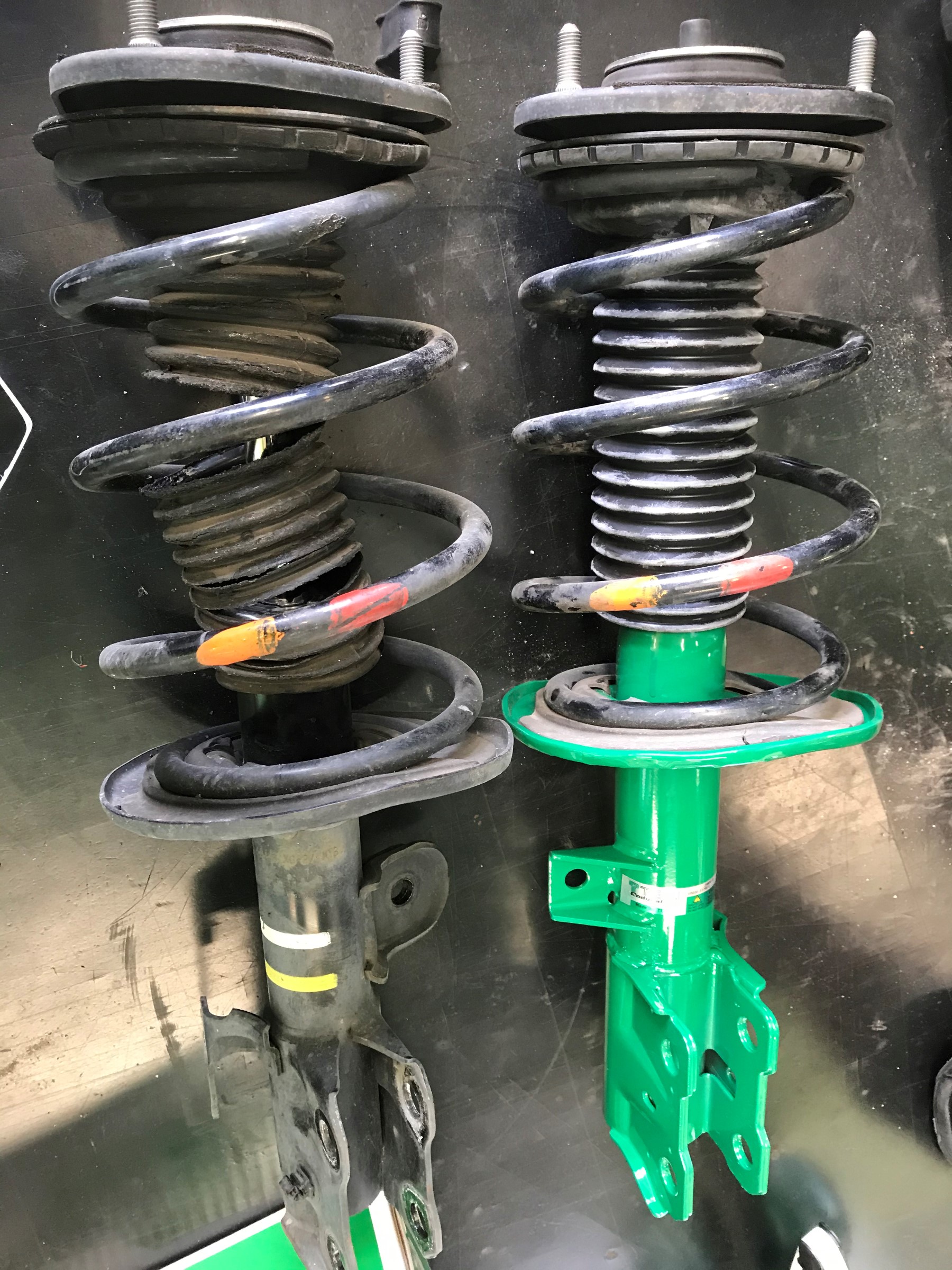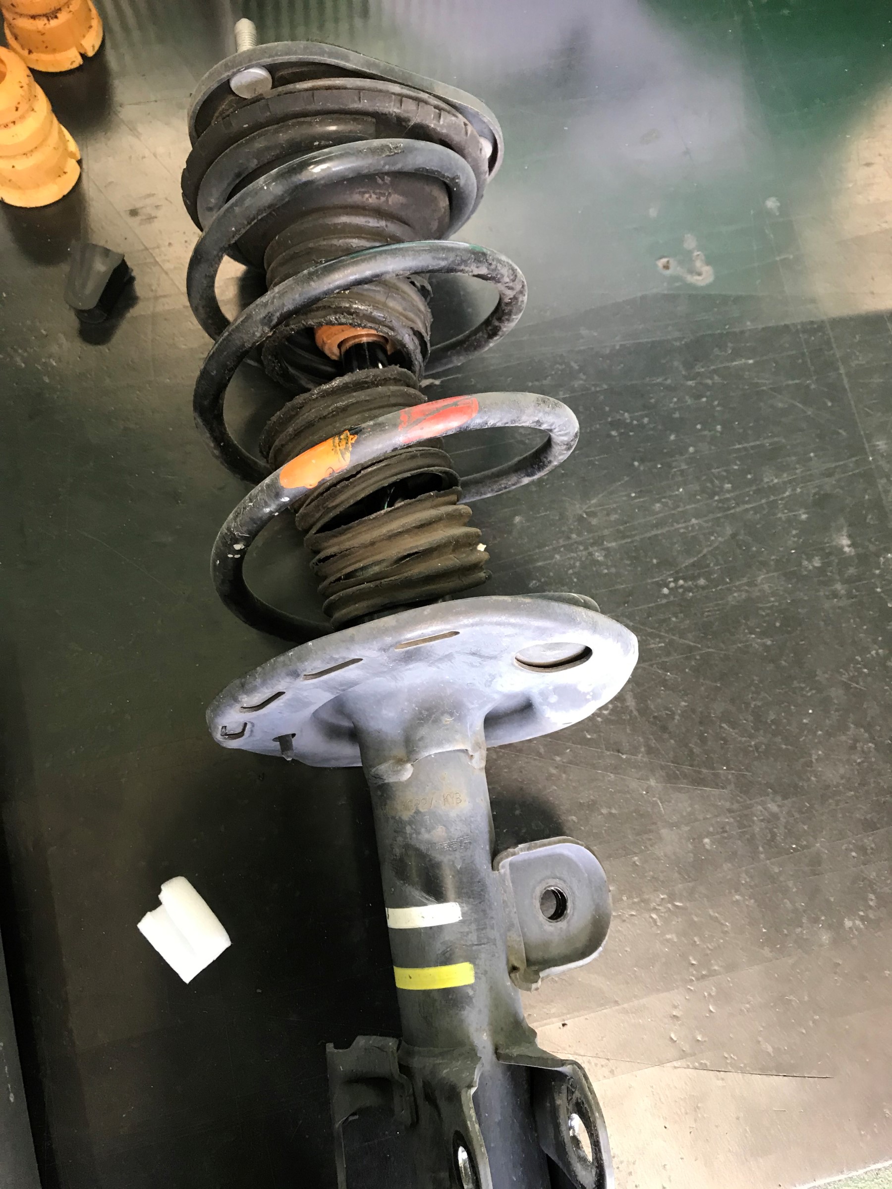 アッパーマウントやスプリングなどは純正流用で組み込んでいきます~