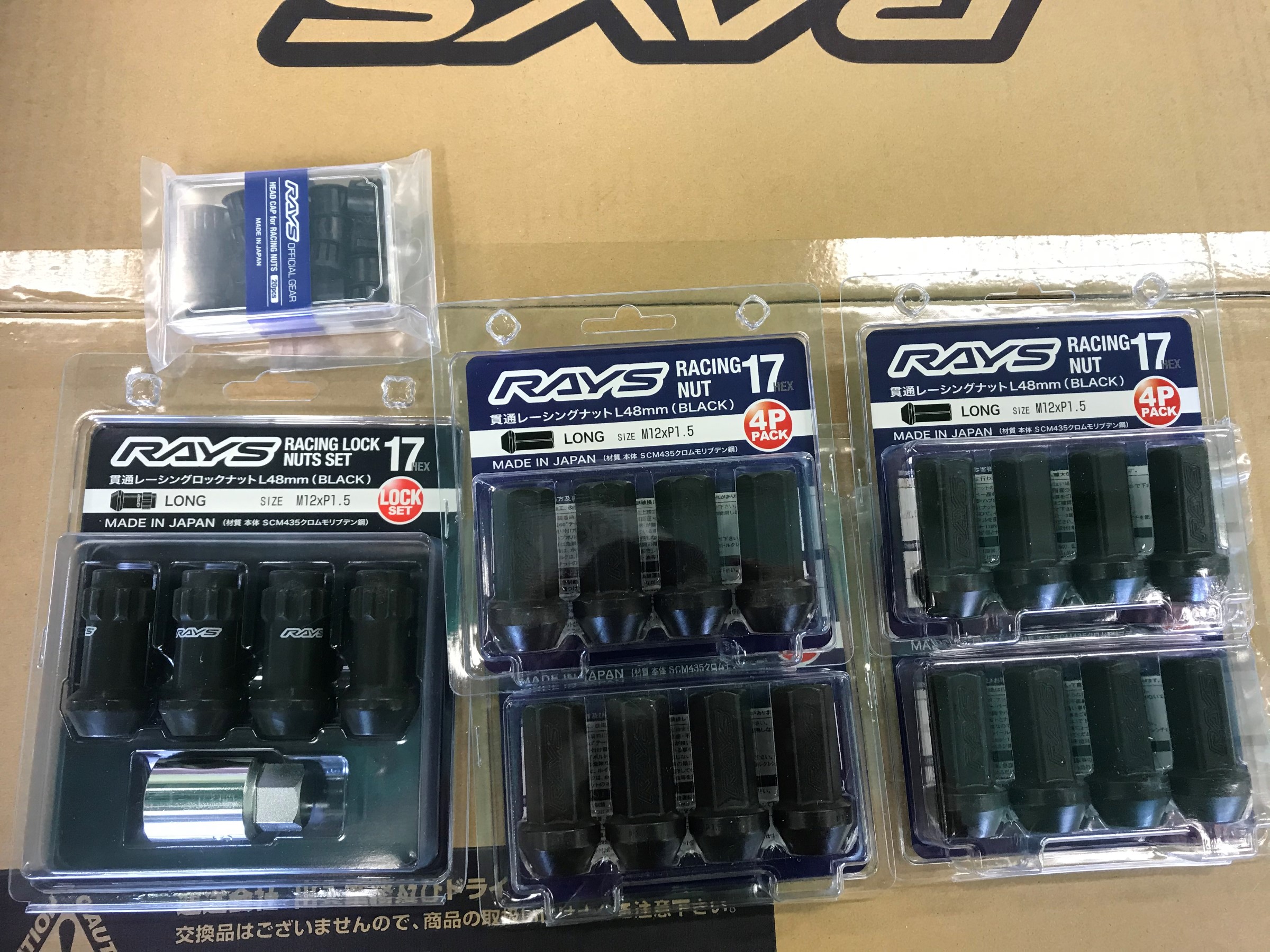 RAYS 17HEXレーシングナットセットとロックナットとヘッドキャップです。