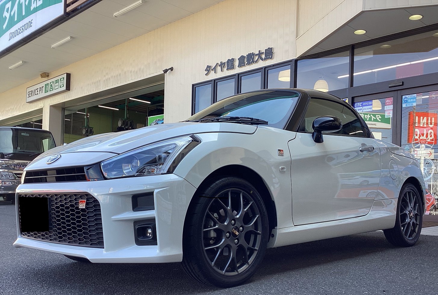 いつもタイヤ館倉敷大島店をご利用いただき有難うございます ダイハツ コペン LA400 にタイヤ交換・アライメント作業いたしました GRのエンブレムが良いですね 入庫して作業始めていきます 取付ける商品は ブリヂストン POTENZA Adrenalin RE005 サイズは 165/50R16 2月に発売された新商品です 走行...