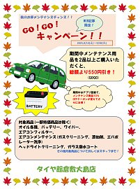 【9/13(土)から!】メンテンスで愛車快調!GOGOキャンペーン!WEB記事限定クーポン!!