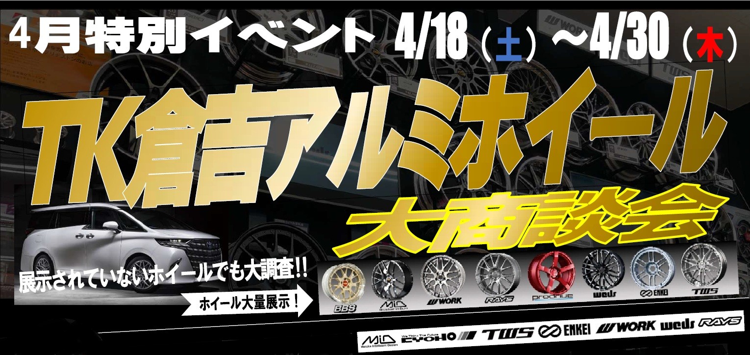 折角ならタイヤ履き替えと一緒にアルミもね!アルミホイール大商談会開催決定‼