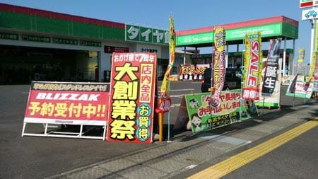 只今、7周年を記念して大創業祭を開催中です。店内の商品がお買得になっています。この機会に欲しかったものを手にいれるチャンスです。タイヤ・ホイールその他もろもろ、ぜひご来店ください。スタッフ一同お待ちしています。