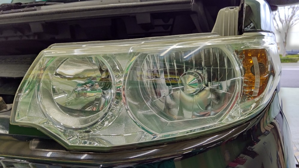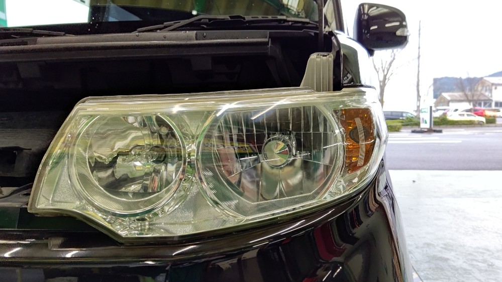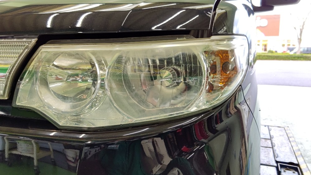 先日ダイハツタントのヘッドライトコーティングを施工しました。