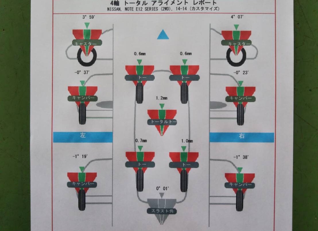 日産ノートのアライメント調整作業になります!