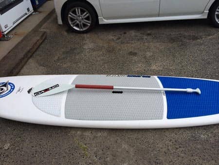 大きなサーフボードの上に乗り、大海原をオールでこぎこぎ!!