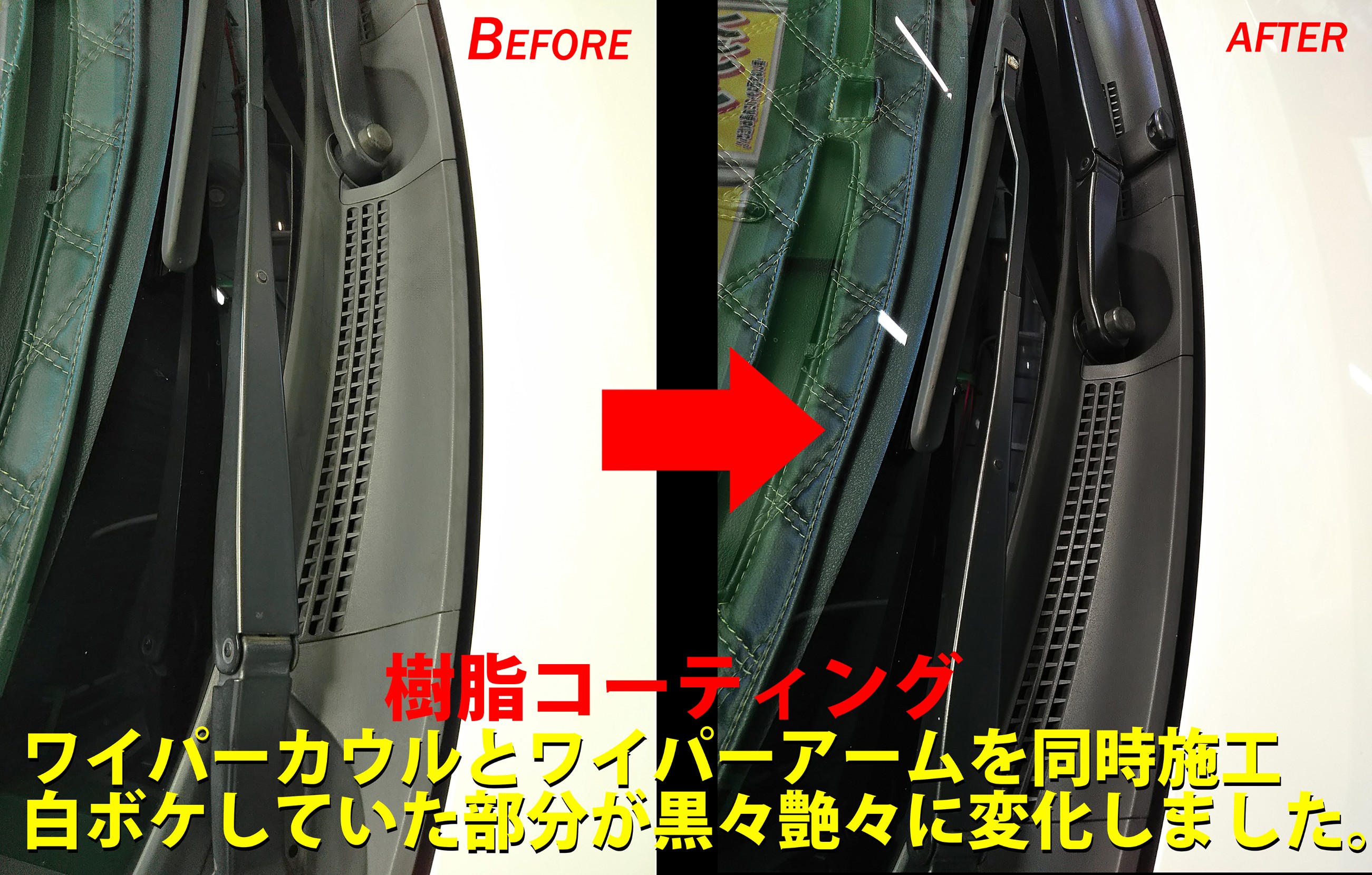 今回はワイパーカウルとワイパーアームを施工。