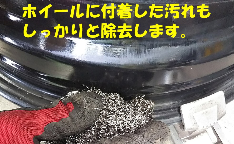 まず古いタイヤを外すと、必ずホイール側の古いタイヤの汚れ等を落とします。