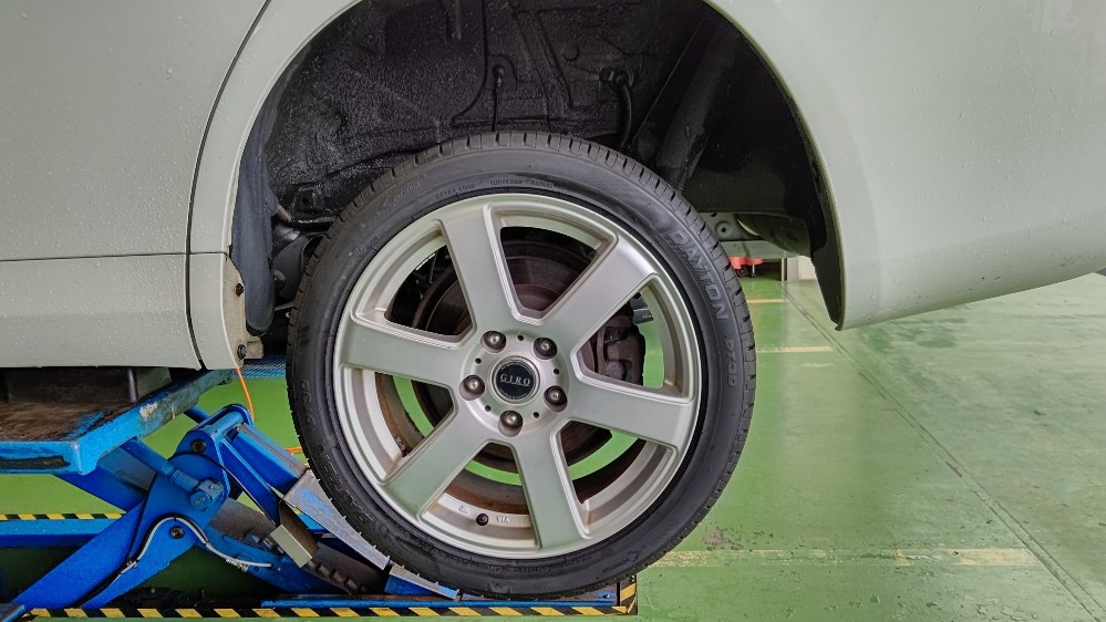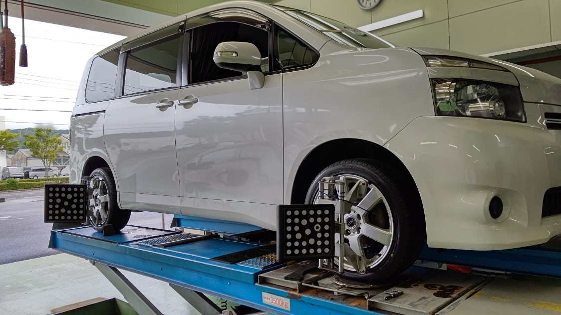 タイヤを見てみると内側だけが極端に減っていたため、アライメント調整も行いました。