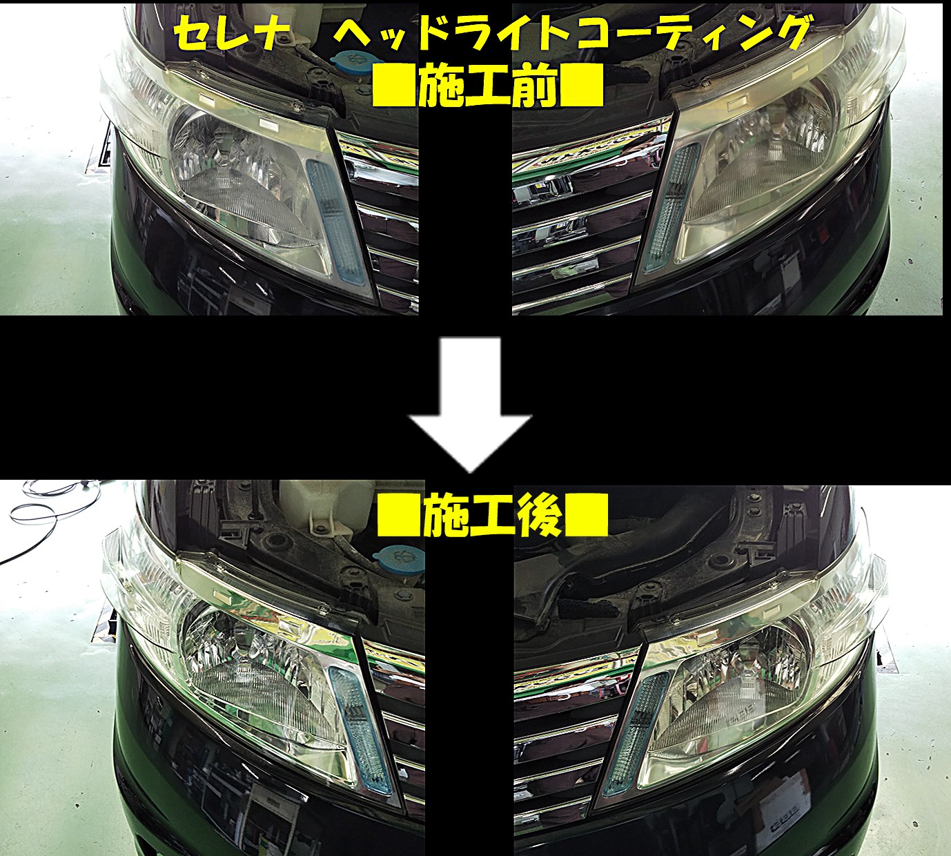 夜のドライブを快適に!ヘッドライトコーティング【ニッサン セレナ】