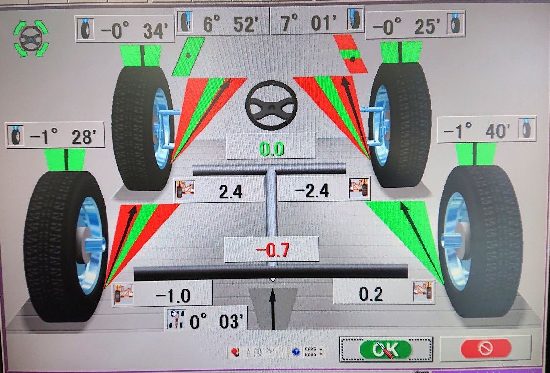 タイヤ長持ち、安全・安心のためにアライメント調整が必要ですね!!