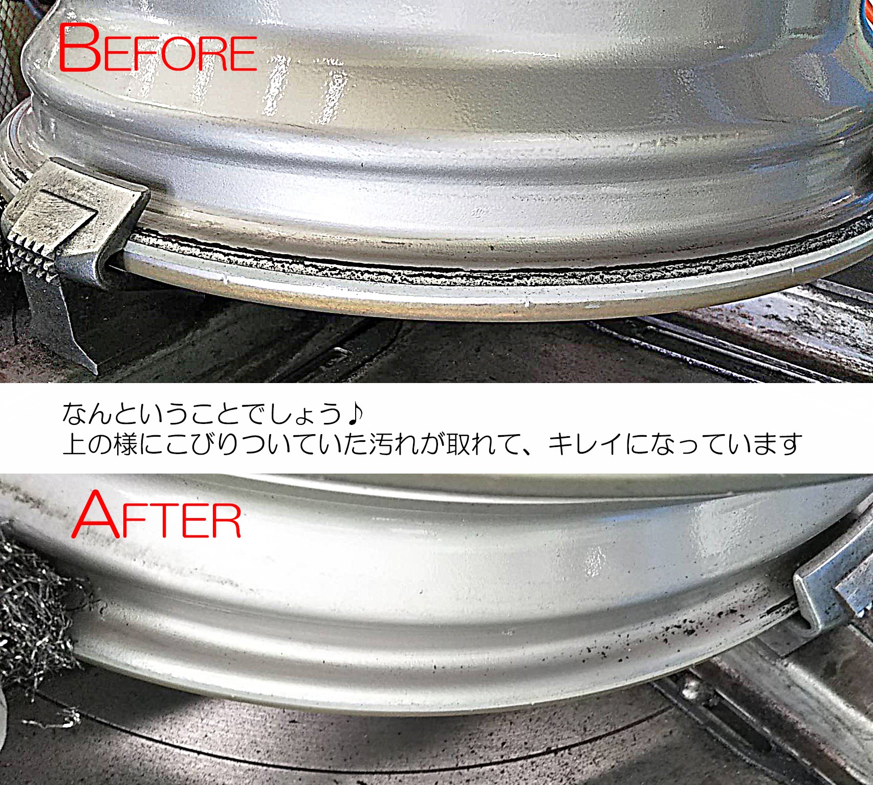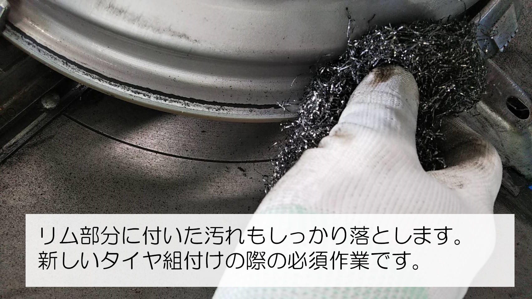 古いタイヤを外すと、リム部分に汚れがビッシリとこびりついています。