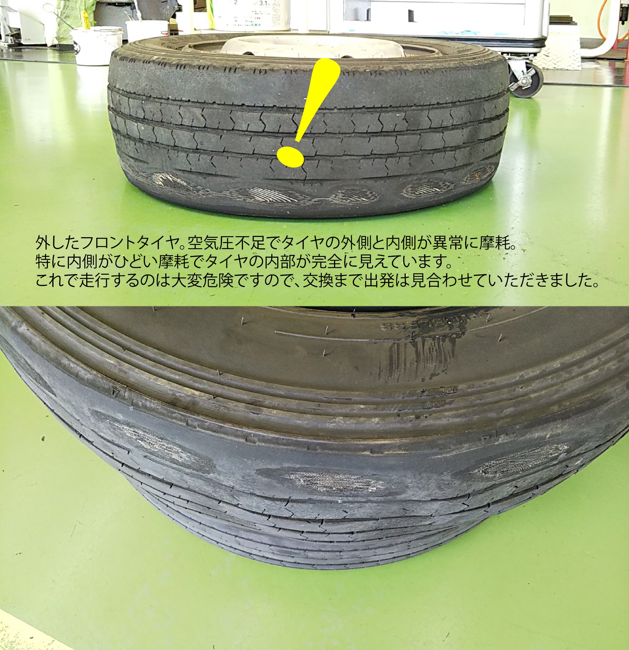 これはいつタイヤがバーストしてもおかしくない状況です。
