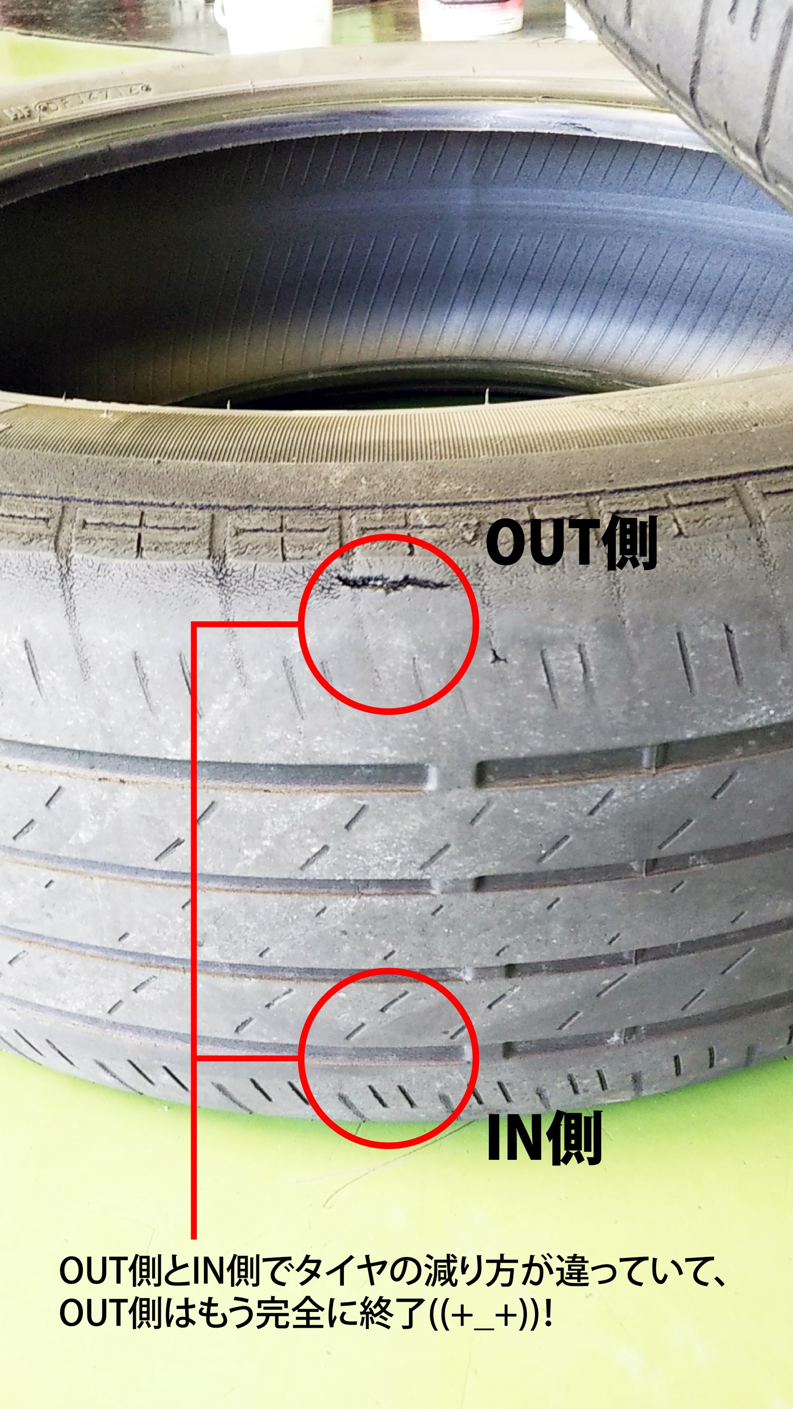 そうなるとタイヤの外側を路面にこするようにして走りますので、タイヤは外から減りますし、