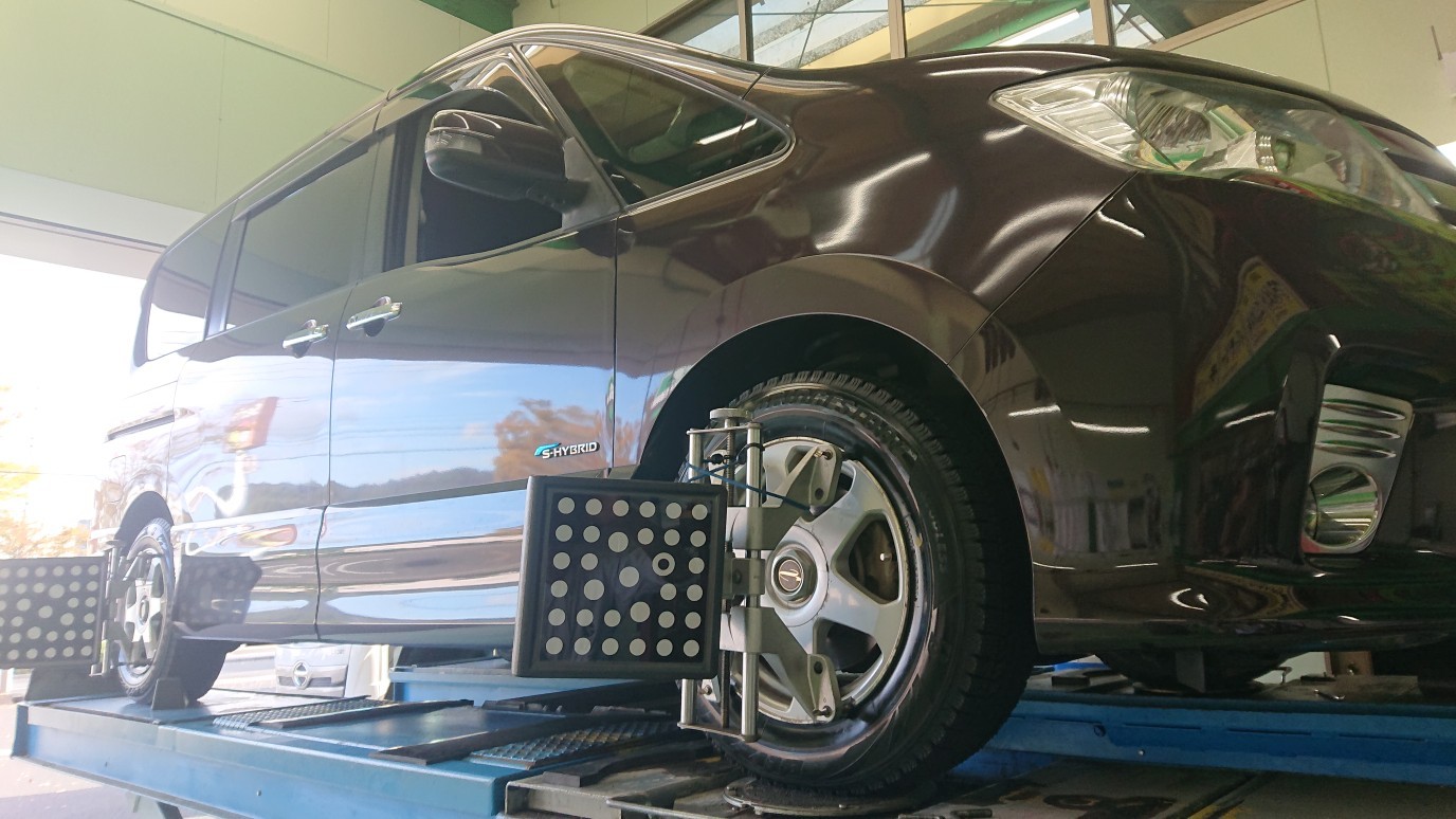 スタッドレスタイヤこそアライメント セレナ タイヤ交換