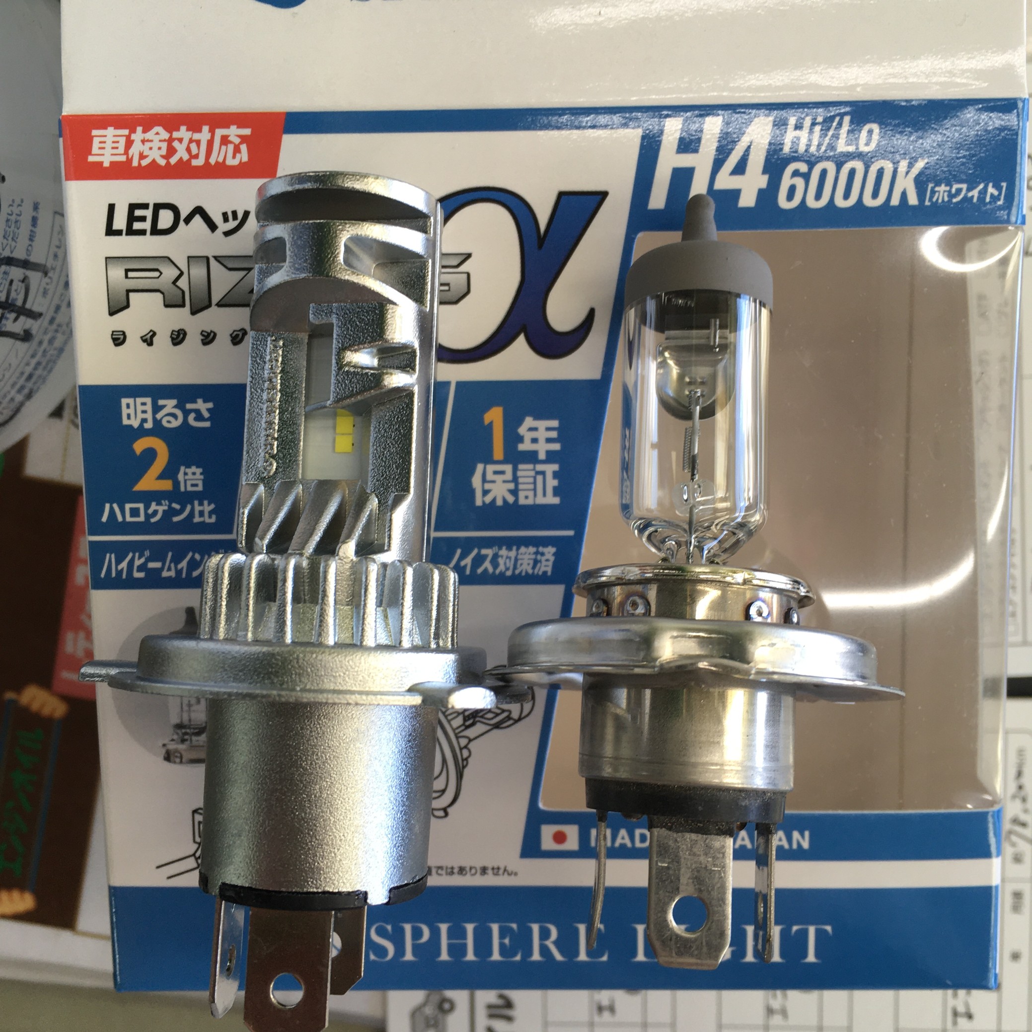 LED交換 ポスト 2022年1月16日 先日ハスラーのお客様が 「純正が暗いのでLEDにしたい」 という相談があり、ヘッドライトをLEDに交換しました。 今回交換したのは「スフィアライトのライジングα」です。 交換前 『ライジングα(アルファ)』は日本製LEDヘッドライト! LEDライトとしてはリーズナブルな価格となっています。 交換後 点灯させると青白い光がまぶしいですね。 これで夜の運転も明るくなり、安心できますね。 担当:井上