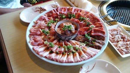 焼肉セット 1人前300g+焼き野菜+おむすび1個で1,500円。