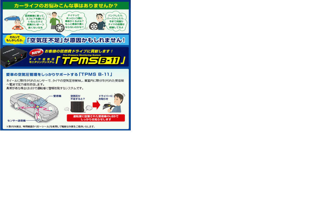 「車内にいながら空気圧がわかる」とても便利なシステムです。