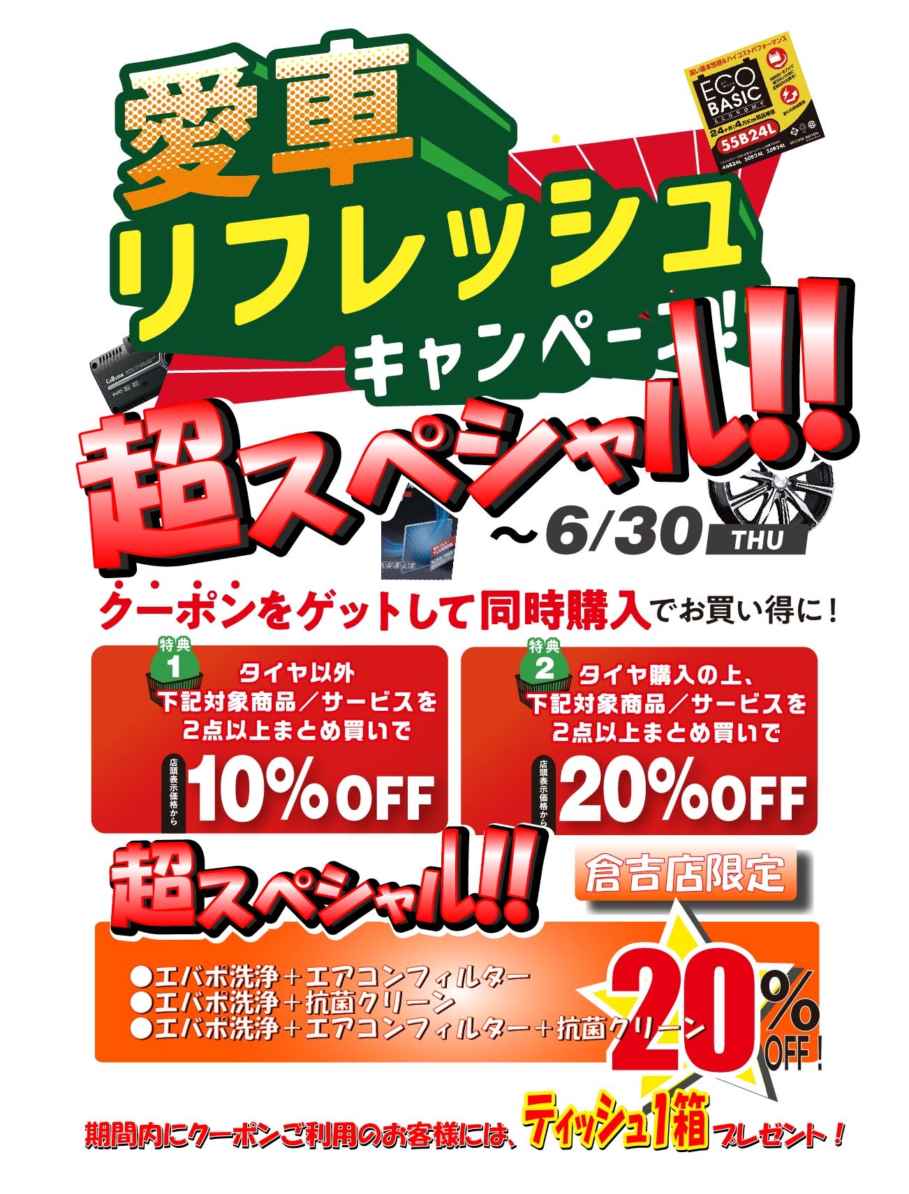 愛車リフレッシュキャンペーン(超スペシャル!)6月30日まで開催中!(^^)/