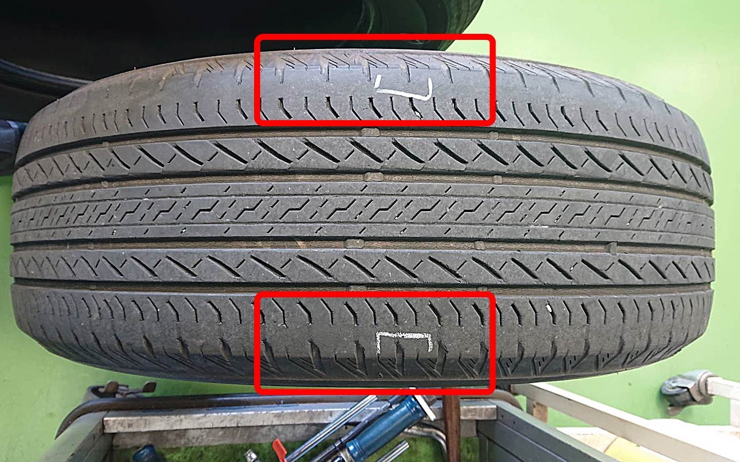 本来であれば内側と外側の減り方はほぼ均等なはずのものが