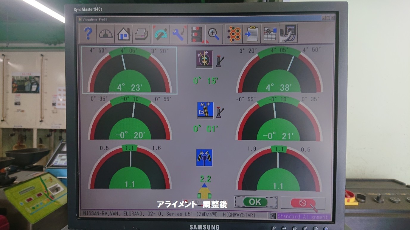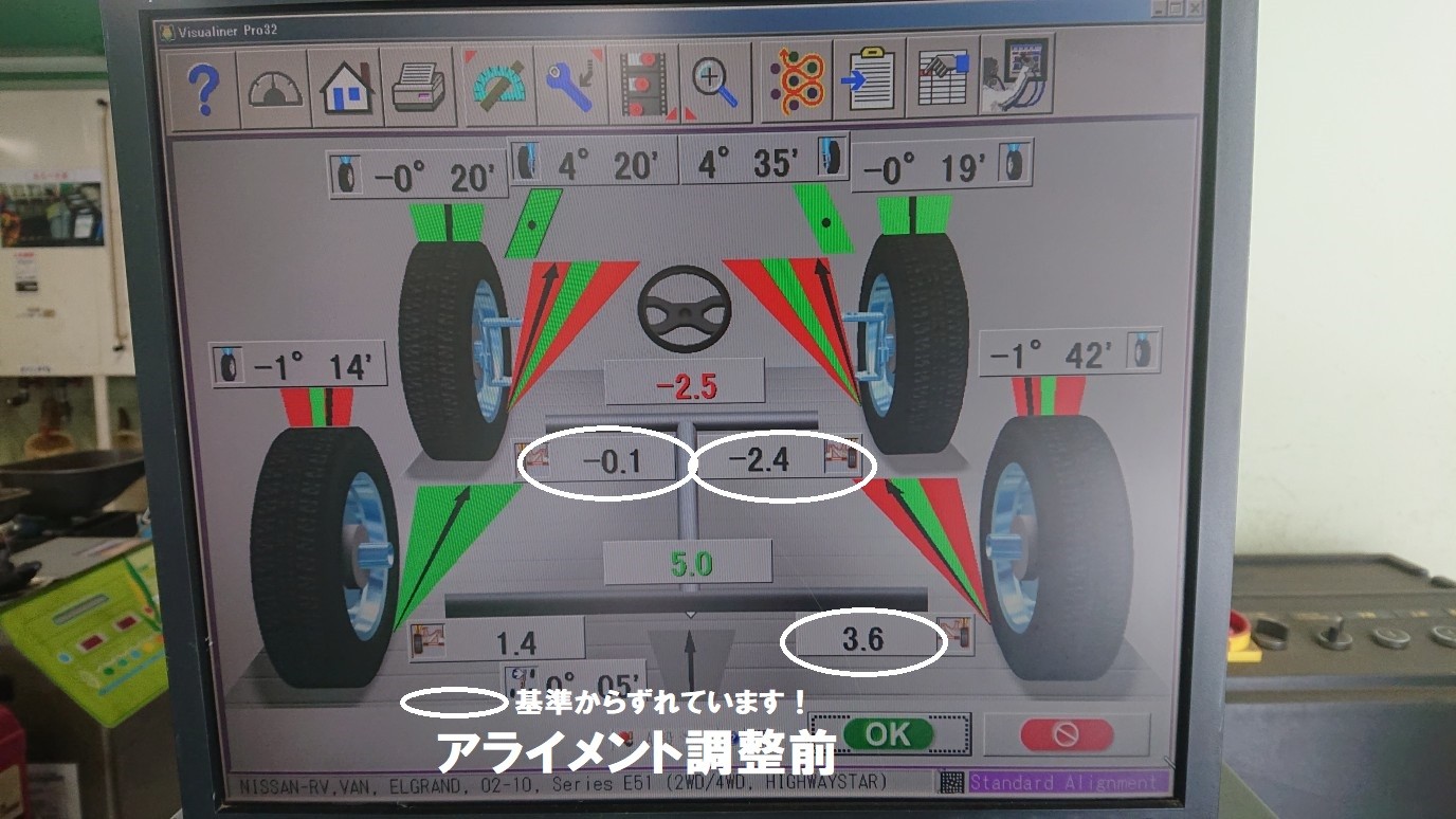 ということでアライメント調整(車の整体)が必要となるわけです。