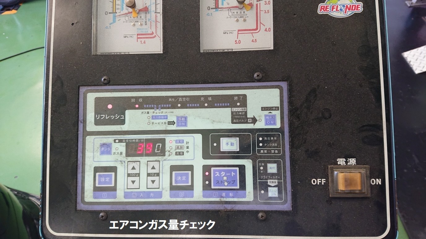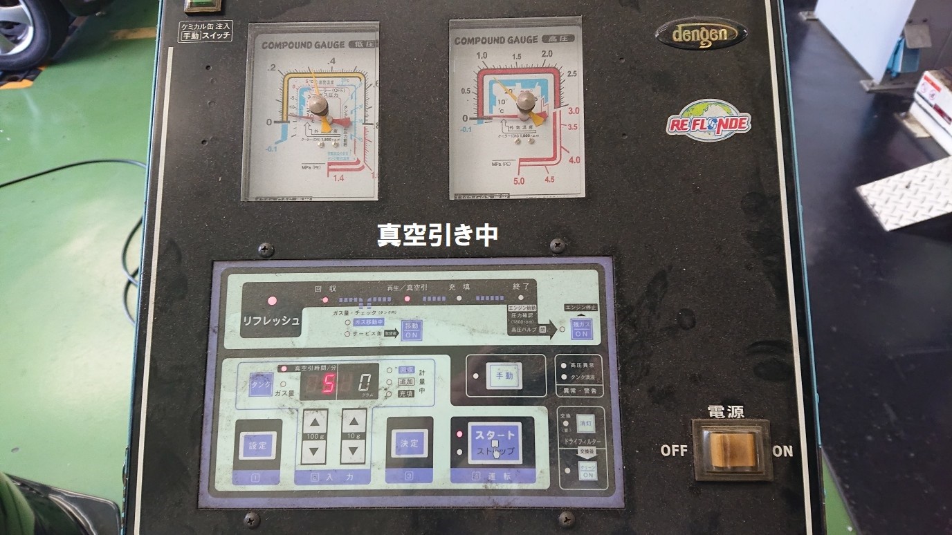エアコンガスを機械の中に回収し、混ざっている水分や油分を除去してから