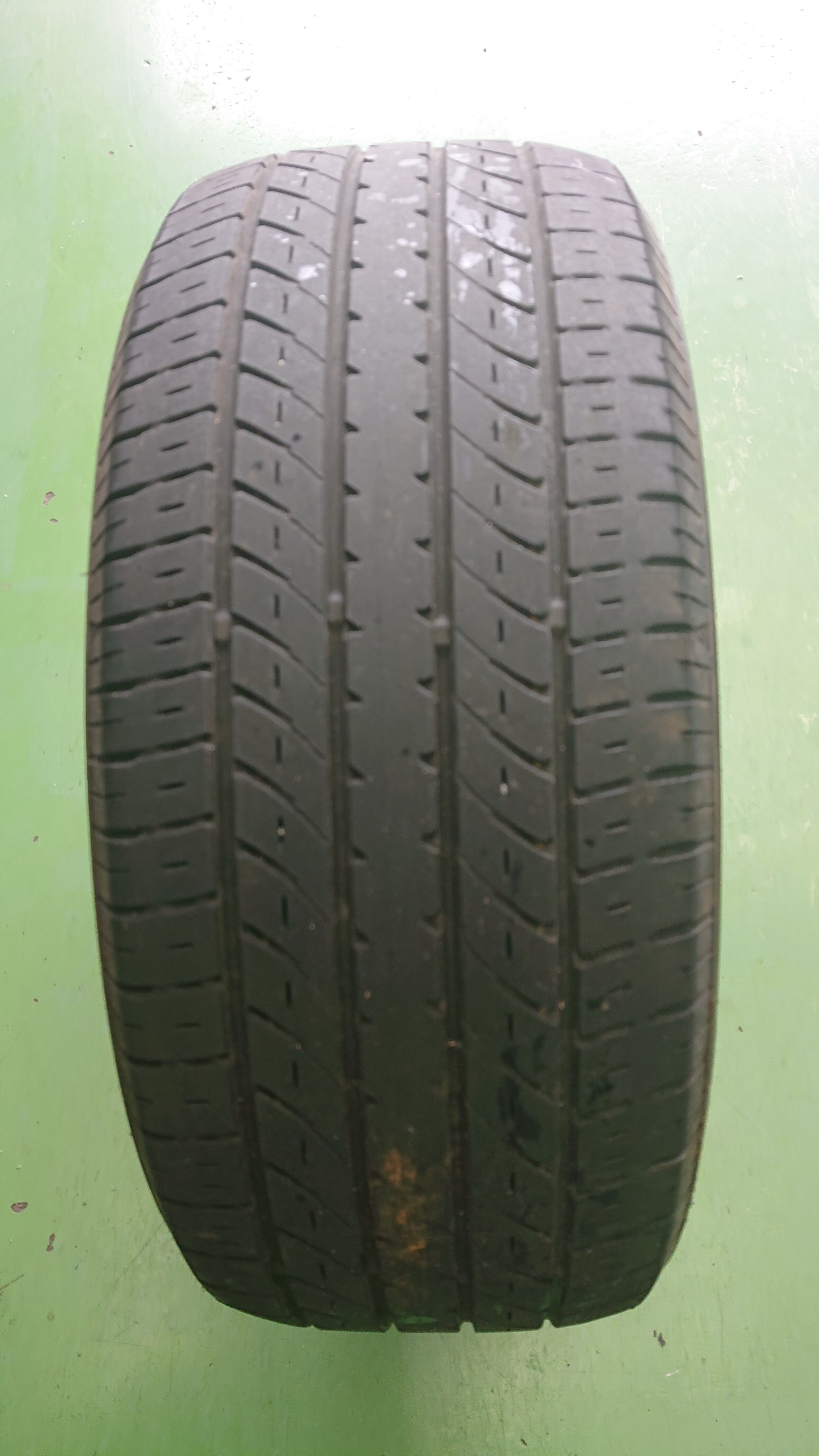 外したタイヤを見てみると少し外側のほうが減っています。